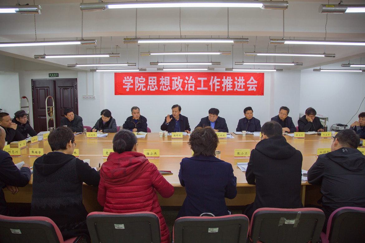 11月24日,学院在含光校区召开思想政治工作推进会。学院党委书记温锋科出席并讲话,院长刘瑞明主持,学院班子成员、学院思想政治工作体系建设领导小组成员部门负责人、各系(部)党总支书记参会。