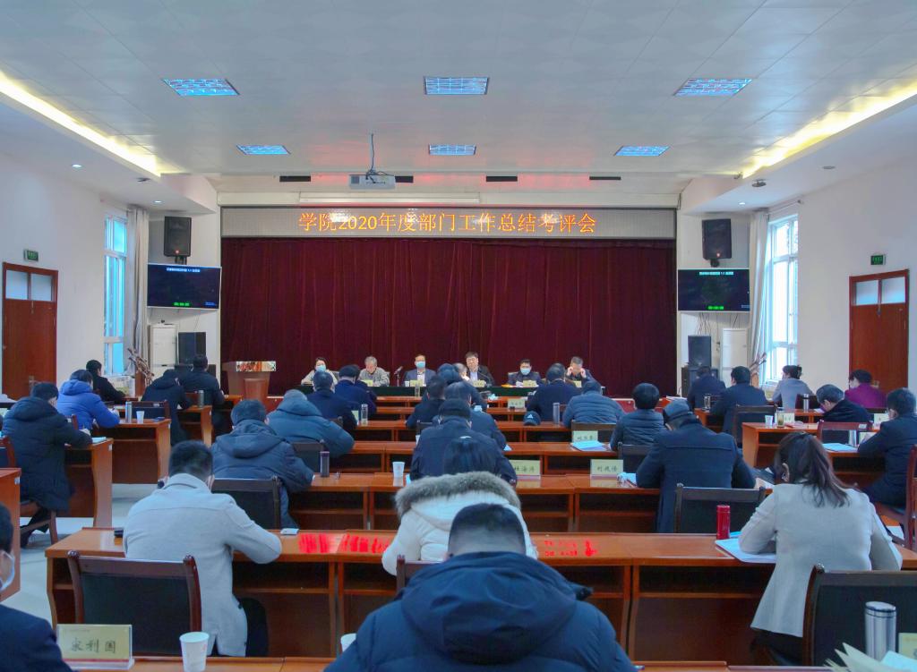 1月19日,院(校)2020年度工作总结考评会在含光校区召开。党委书记温锋科讲话,院(校)长刘瑞明总结全年工作,提出2021年重点工作,副院长赵兴刚主持,副院长宁建飞、刘晓琴,纪委书记陈永利及全体副处(含助理)以上干部参加。