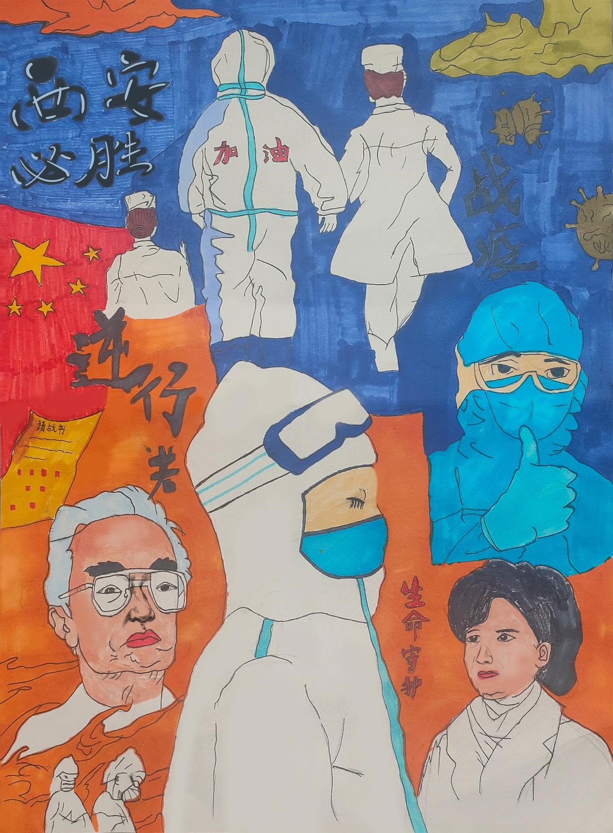 疫情当前,数字信息技术系的同学们在学校用画笔绘制出无声的“语言”传递爱的力量。同学们将自己的热血、希望、感恩化作一幅幅艺术作品,为这场“战疫”中平凡又伟大的人们加油,齐心协力共同打赢这场与病毒之间的战争。同时也希望通过这种方式引领陕青学子在学习生活中,保持积极阳光的生活态度,勇于担当青年责任。(数字信息技术系供稿)