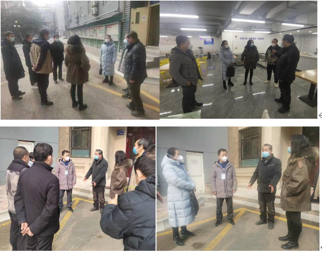 1月10日上午,张家村街道综网中心主任郑萍与张家村街道融信社区党支部书记、社区主任谷永萍一行来BEAT365(院)含光校区检查指导疫情防控工作。