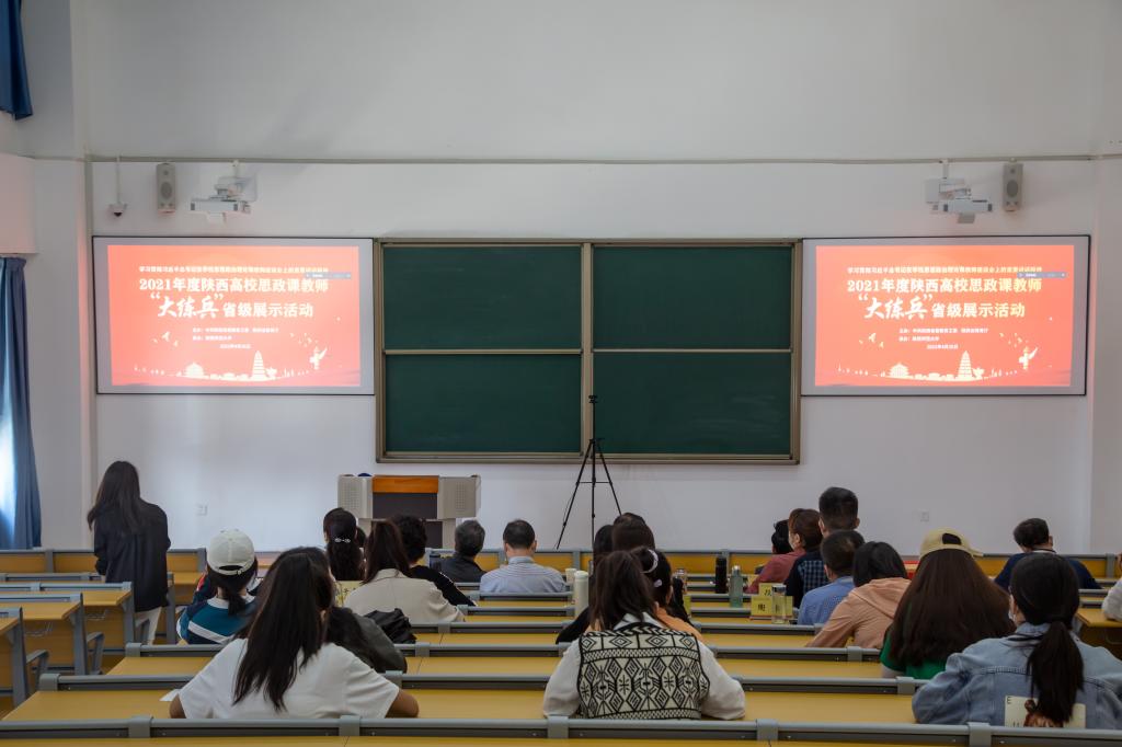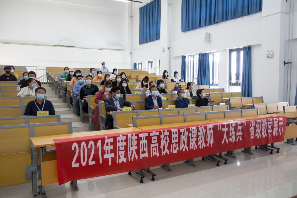 4月26日, 2021年度陕西高校思政课教师“大练兵”省级展示活动在陕西师范大学举行。校院党委书记温锋科,副校(院)长赵兴刚、宁建飞、刘晓琴,纪委书记陈永利,党委(院长)办公室副主任、宣传部副部长张晓娟,教务处副处长张小卫,马克思主义学院院长马雅玲,全体思政课教师、辅导员及学生代表在长安校区全程参加直播观摩。