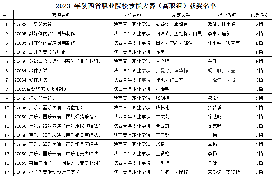 近日,陕西省教育厅印发《关于公布2023年陕西省职业院校技能大赛结果的通知》,学院共参加20个赛项,获奖17项,其中A档2项、B档3项、C档12项,获得“优秀组织单位”称号,承办了2023年陕西省职业技能大赛“融媒体内容策划与制作”赛项。学院“产品艺术设计、融媒体内容策划与制作”两支参赛队代表陕西省参加全国职业技能大赛。