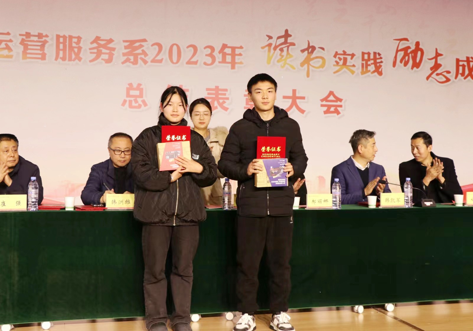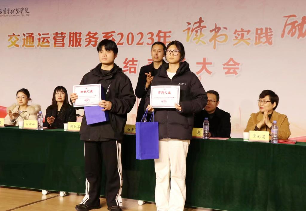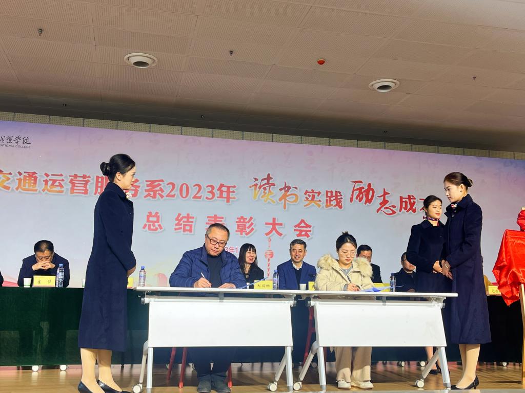 12月26日,交通运营服务系2023年“读书实践 励志成才”总结表彰大会在长安校区召开。副院长韩凯军出席,学生工作部(学生处)部(处)长祁志、联系班处级干部、交通运营服务系班子成员、各教研室主任、副主任、辅导员、2022、2023级班主任及全体同学参会,特别邀请校企合作单位京东物流集团西北区人力资源部高级经理白光泽、西安全路通号器材研究有限公司总工办主任郝丽娜、综合办主任牛慧、西安顺丰速运有限公司人资经理姚嘉雯等企业领导参会。大会由交通运营服务系学生工作负责人张波主持。
