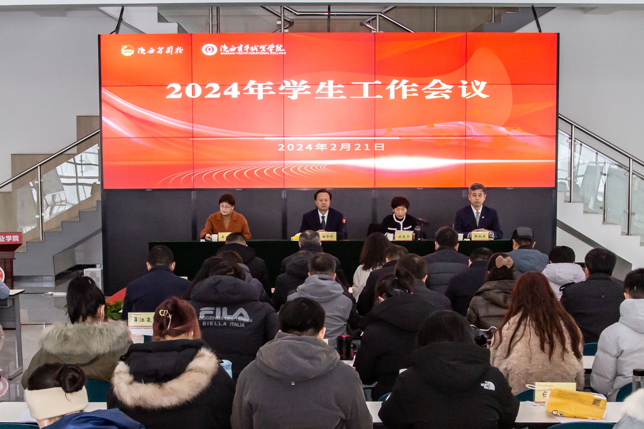 2月21日,学院2024年学生工作会议在长安校区召开。党委书记温锋科,党委副书记梁菀华,党委副书记、纪委书记薛红萍,副院长韩凯军出席。各系(院)、各部门主要负责人,各系教学工作负责人、学生工作负责人,学生工作部(学生处)、团委全体人员,全体辅导员、专职班主任和生活辅导员参加。会议由梁菀华主持。