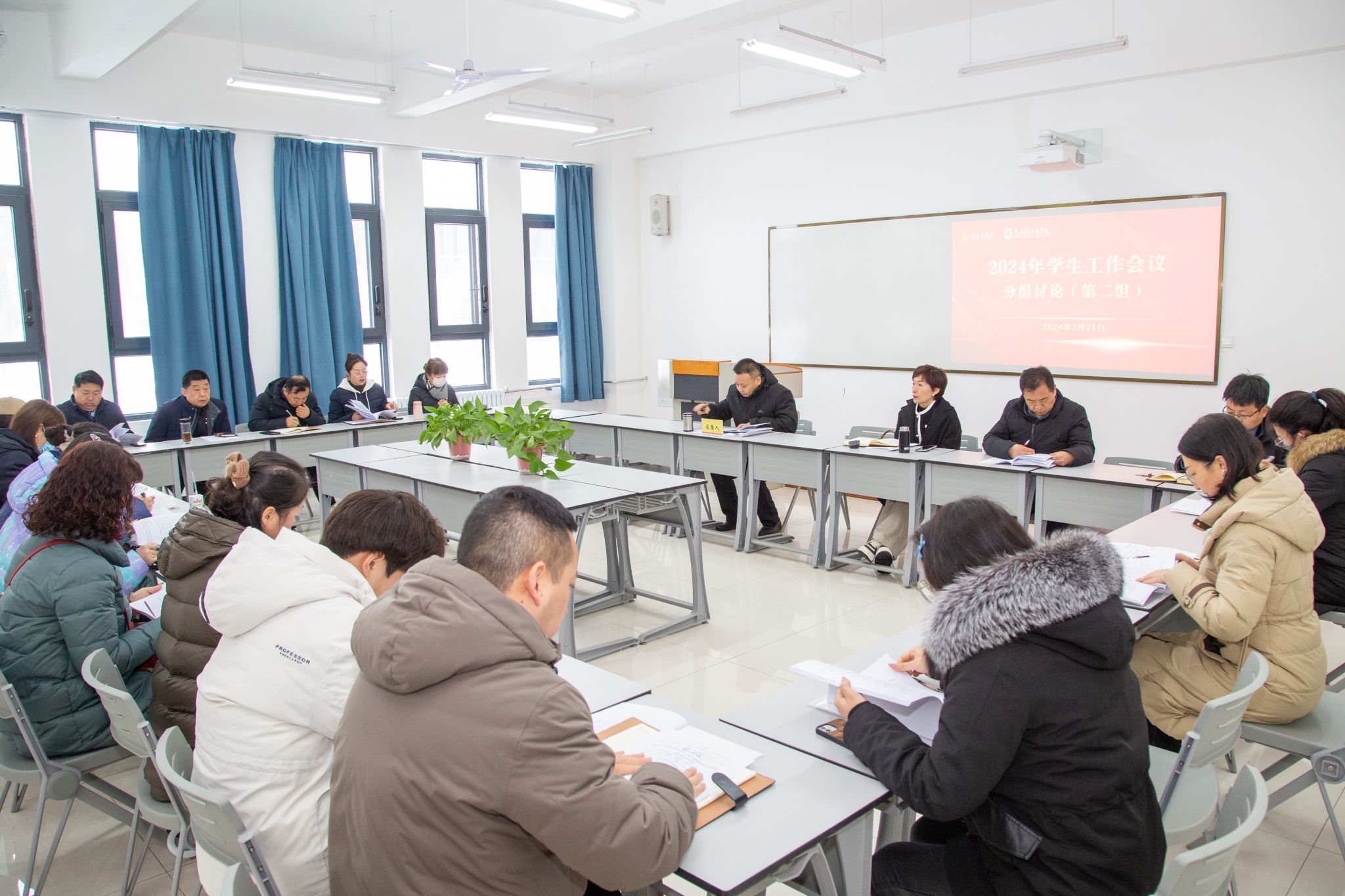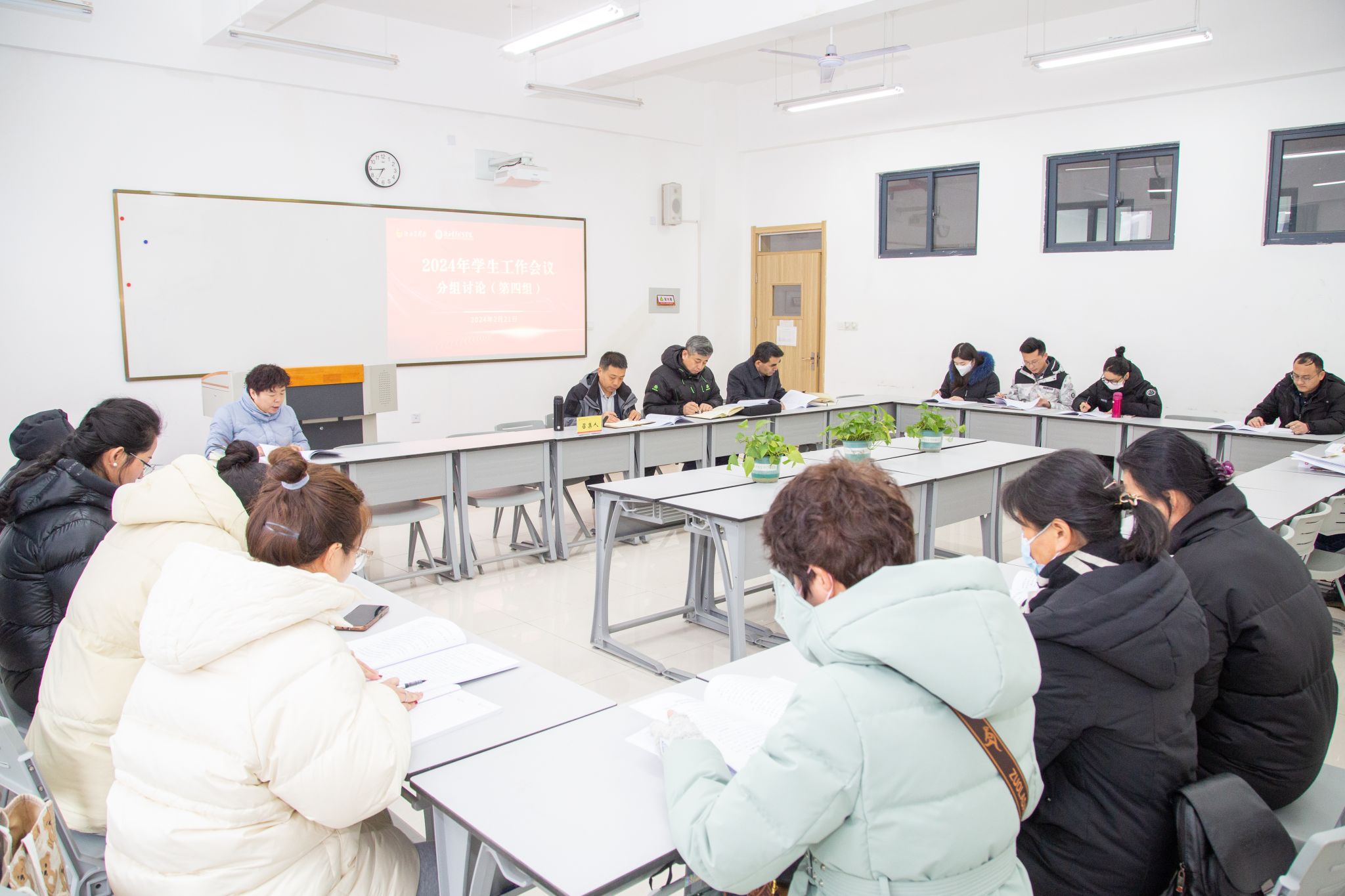 按照会议安排,与会人员分四组对《2024年学生工作报告》《BEAT365英国官网辅导员工作考核办法》《BEAT365英国官网“知心青苑”面对面谈心谈话工作实施办法》进行了讨论,围绕如何落实立德树人根本任务,以新质生产力催生校(院)新质发展力,不断提升学生工作水平,实现 2024 年教育教学工作良好开局,持续推动学院教育事业高质量发展积极建言献策。各组召集人向大会汇报了本组讨论情况。