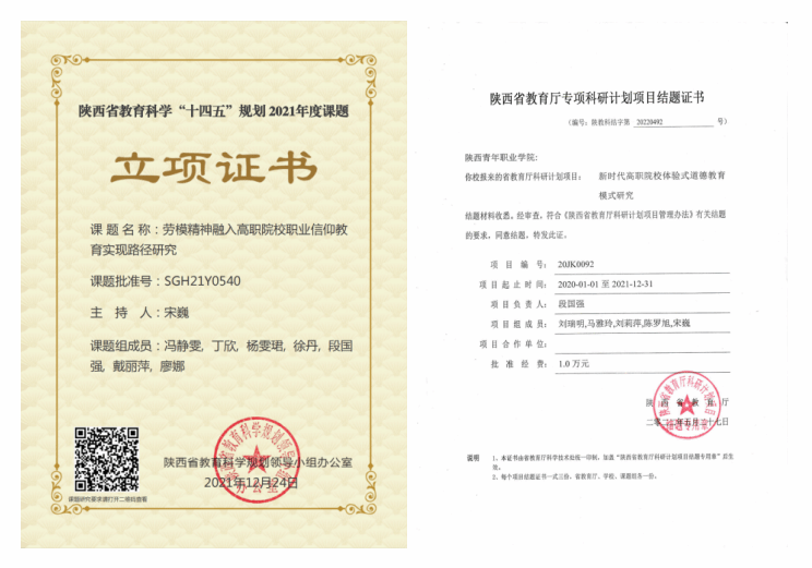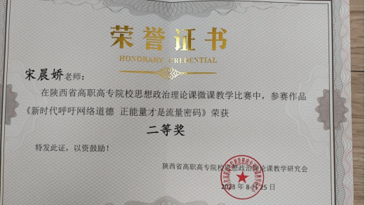 强化以赛促教,帮助教师成长——五年来,教师分别荣获共青团陕西省委“清廉说”演讲比赛三等奖、优胜奖、陕西高校思政课教案比赛二等、三等奖,陕西高校第五批思想政治教育研究项目研究成果优秀奖,陕西省高职高专院校思想政治理论课微课教学比赛二等奖,陕西省高职高专院校“师生畅谈二十大 微宣讲”优秀奖,BEAT365英国官网教学成果特等奖,BEAT365英国官网教学能力大赛二等、三等奖,获评BEAT365英国官网年终考核“创新奖”等。先后涌现出全国高校思政课教学骨干1人,陕西高校思政课教师“大练兵”教学标兵2人、教学能手5人、教学团队能手1个等。