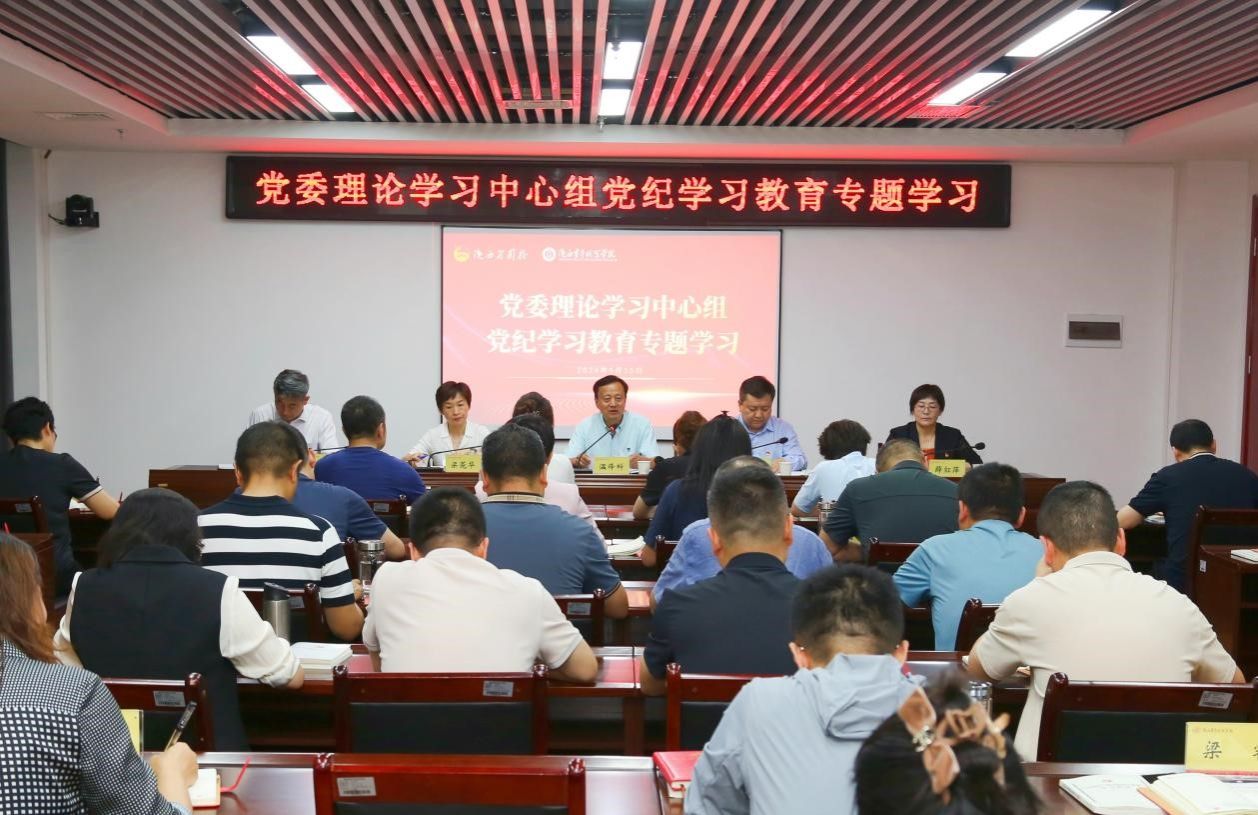 5月15日,校(院)举行党委理论学习中心组党纪学习教育专题学习,校(院)党委书记温锋科主持学习,副处(含助理、协助工作)及以上干部参加。