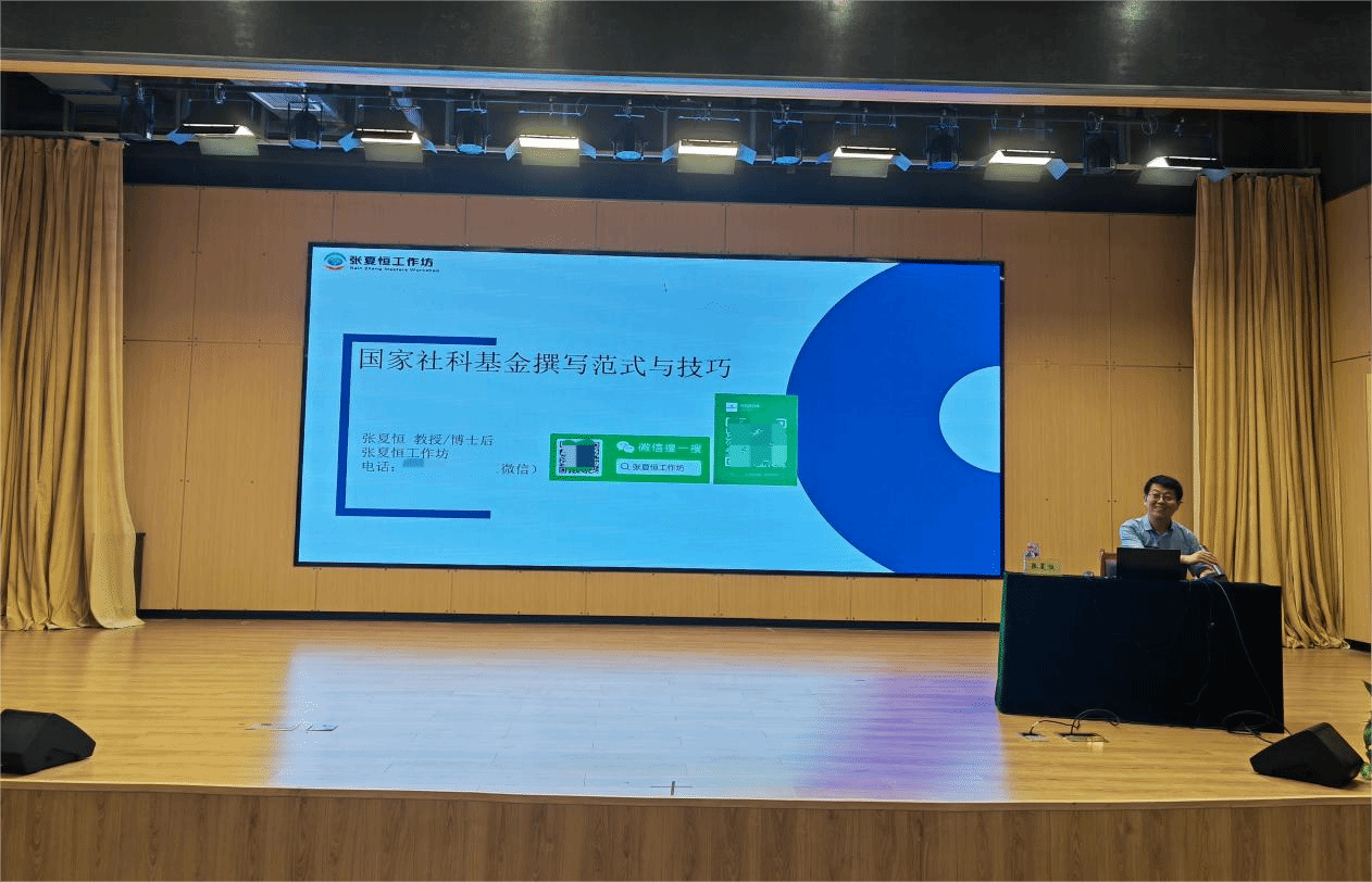 张夏恒教授以“社科基金项目的撰写范式和技巧”为题,从科研项目概况、社科项目的变化、申报途径、项目选题和申报材料的撰写等方面展开,特别是结合自身主持科研项目的体会,分享了自己申报国家社科基金项目的成功经验,围绕“好本子”的评价标准、项目选题的原则与步骤、活页撰写的关键要点和技巧等内容作了生动细致的讲解,为全体教师带来了一场高水平、有针对性的学术报告。报告内容紧贴校(院)教育教学工作实际,对教师开展科研项目研究、开拓研究思路、改进研究方法、提高研究质量具有重要的学习和借鉴作用。
