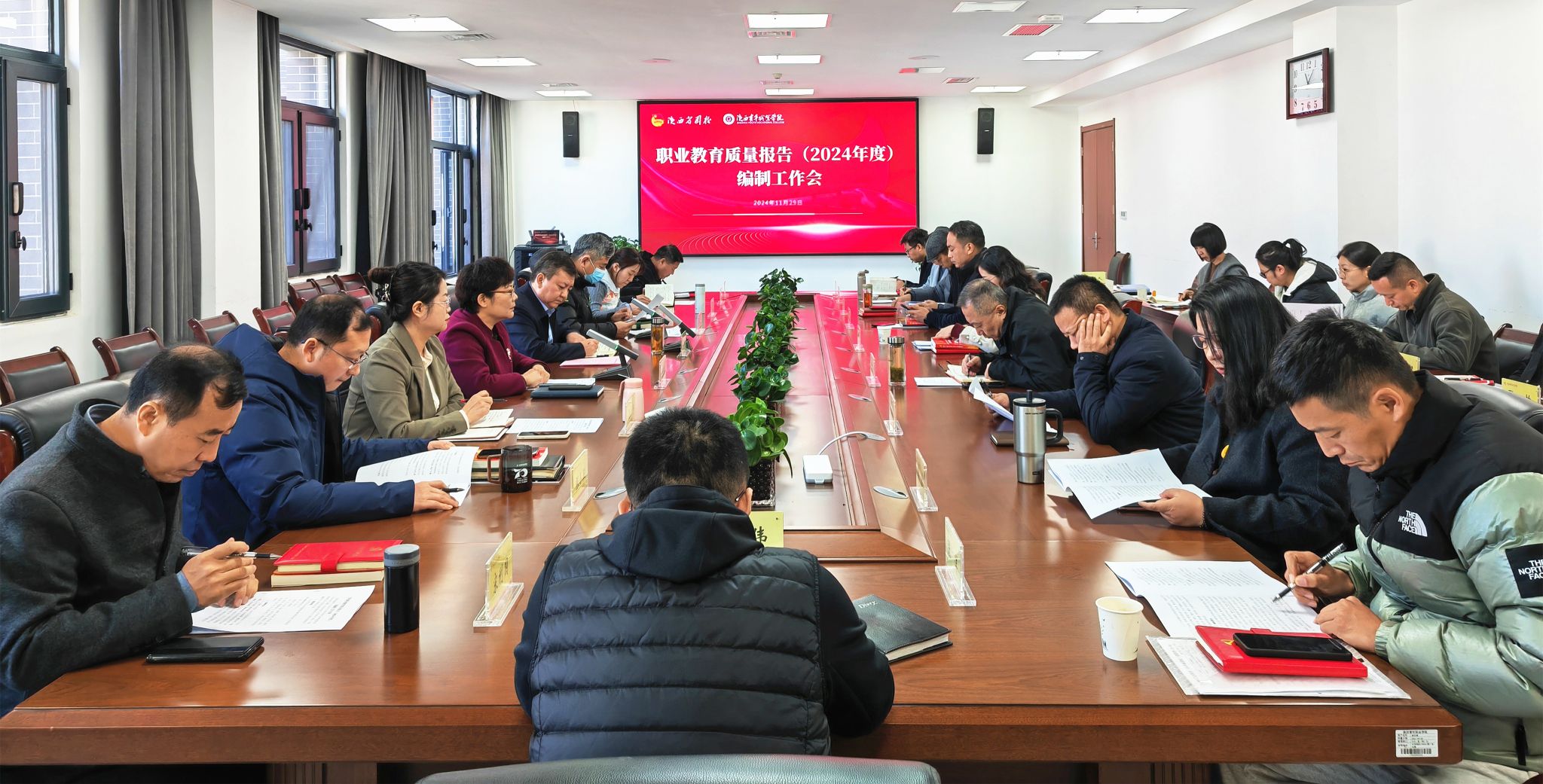 会上,集中学习了《陕西省教育厅办公室关于做好陕西职业教育质量报告(2024年度)编制、发布和报送工作的通知》。科研处处长党彩莉重点解读了今年质量报告编制工作的新内容、新要求,介绍了学校2024年质量报告框架体系主体内容、典型案例撰写原则等,并就报告编制的分工、时间进度安排、责任部门等进行了安排部署。