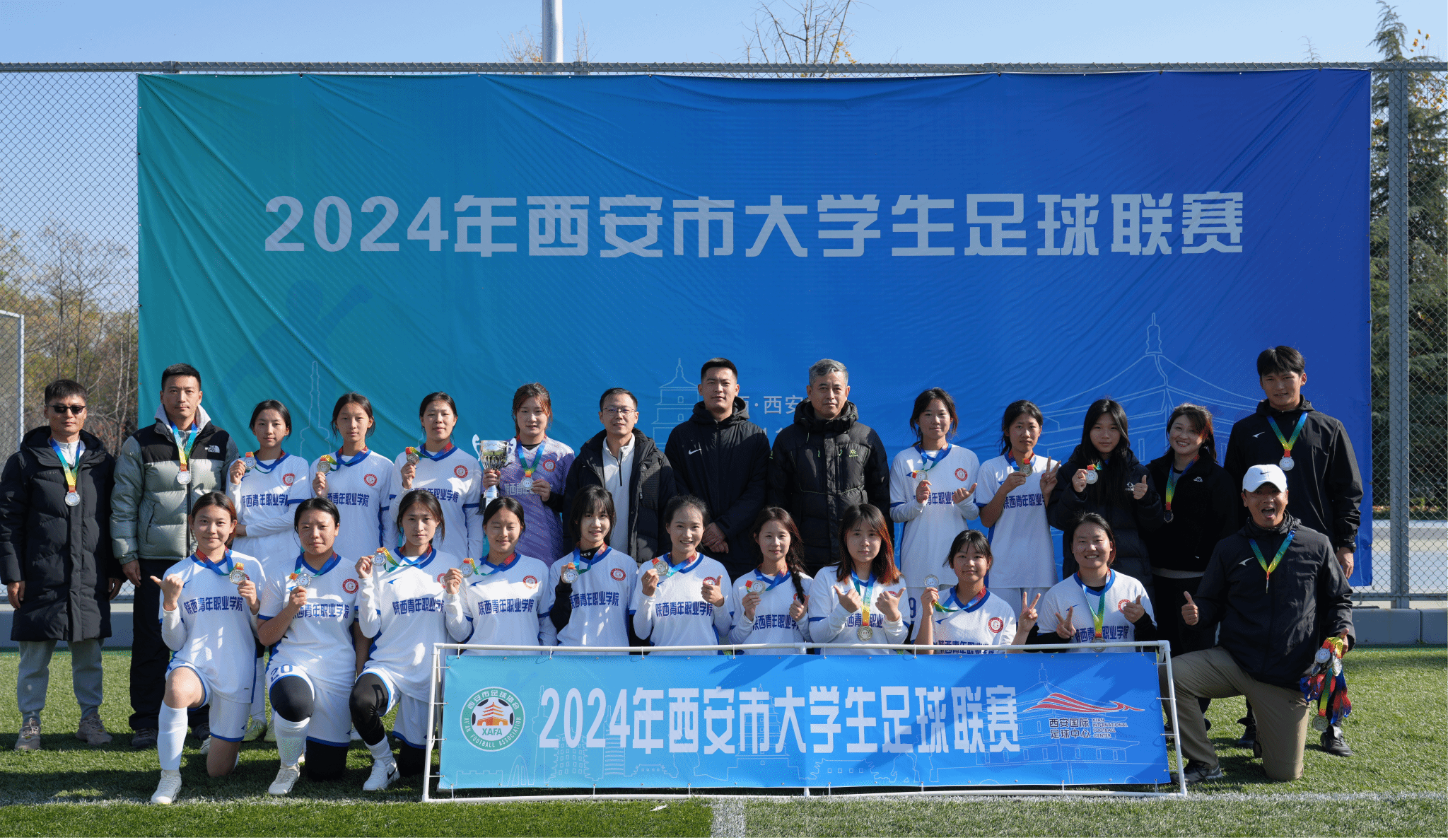 11月30日,2024年西安市大学生足球联赛在沣东足球公园落下帷幕。本次赛事由西安市体育局、教育局主办,共有来自西北工业大学、长安大学、西安理工大学、武警工程大学等九所高校的12支队伍受邀参加。BEAT365女子足球队作为陕西省大学足球联赛高职高专组卫冕冠军受邀参赛,这也是校女子足球队首次在正式比赛中与本科院校球队同场竞技,共享足球快乐,释放足球激情。
