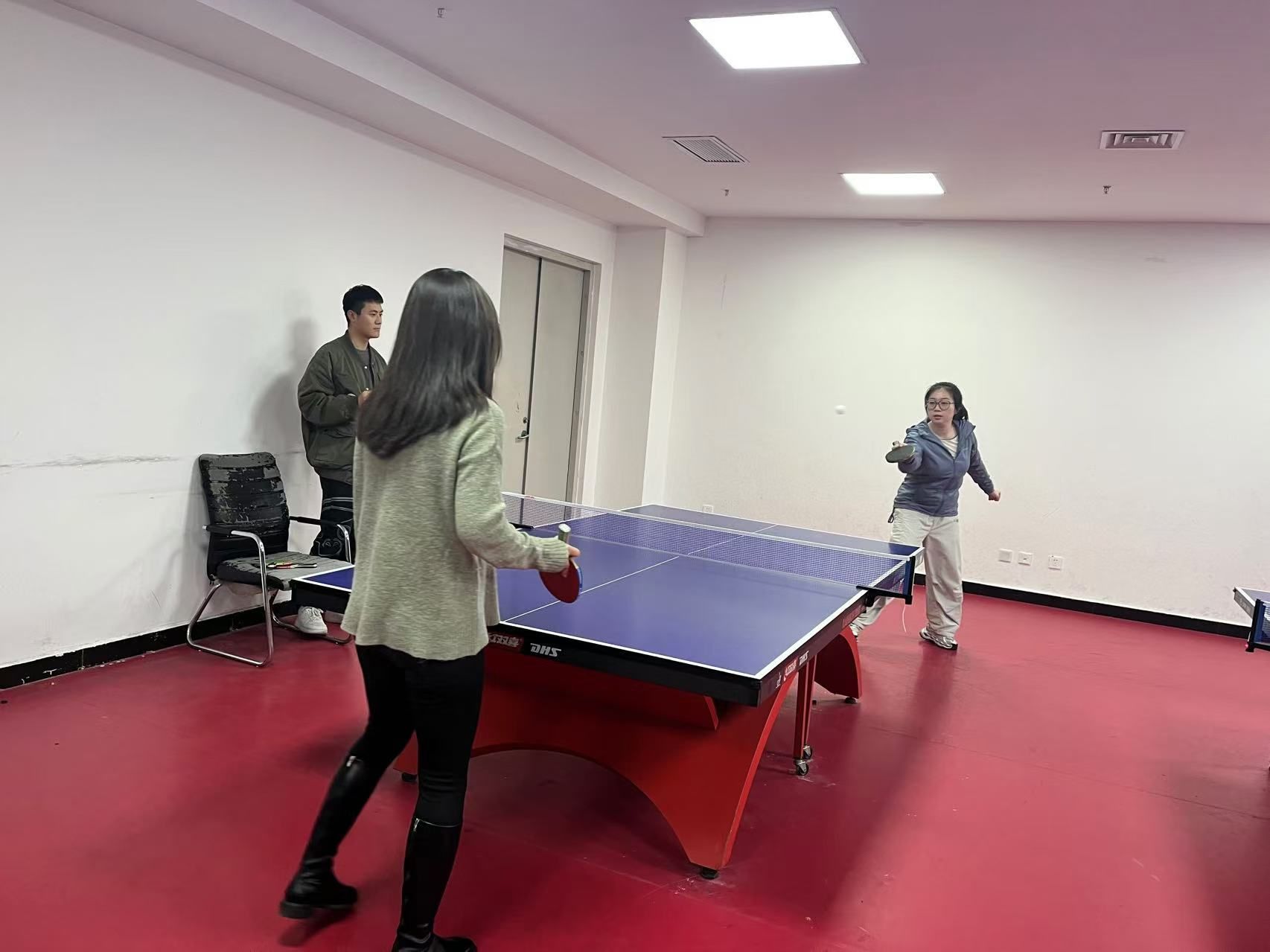 12月5日,学校工会组织教职工开展冬季乒乓球比赛,党委副书记梁菀华参加活动。