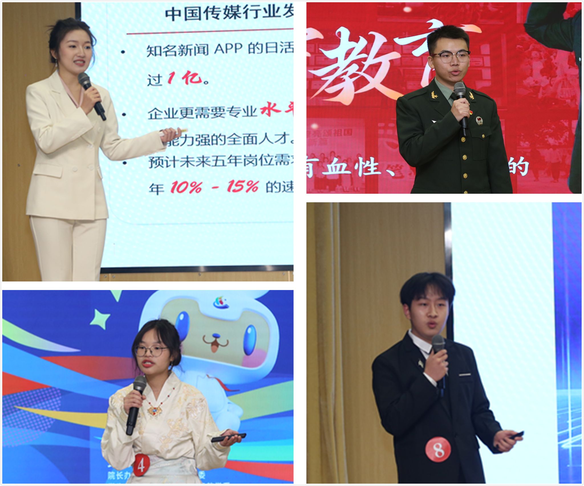 12月24日、26日,交通运营服务系、数字经济与数字技术系分别协办了校赛成长赛道、就业赛道决赛,招生就业处、党委办公室、宣传部、学生处、教务处、团委、各系主要负责人、各系学生工作负责人、大赛指导教师、辅导员、近400名学生参加决赛观摩。最终,李蕤、杨涛、李艺涵、李依霆4名选手分获两个赛道校赛金奖,员梦、宁煜欣等8名选手分获两个赛道银奖,王甜、云正浩等13名选手分获两个赛道铜奖。