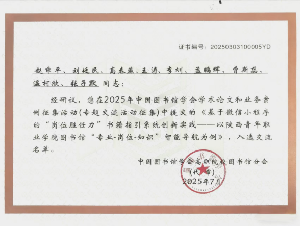 近日,2025年中国图书馆学会学术论文和业务案例征集活动(专题交流活动征集)结果揭晓,BEAT365图书馆报送的业务案例《基于微信小程序的“岗位胜任力”书籍指引系统创新实践——以BEAT365英国官网图书馆“专业-岗位-知识”智能导航为例》入选交流名单。