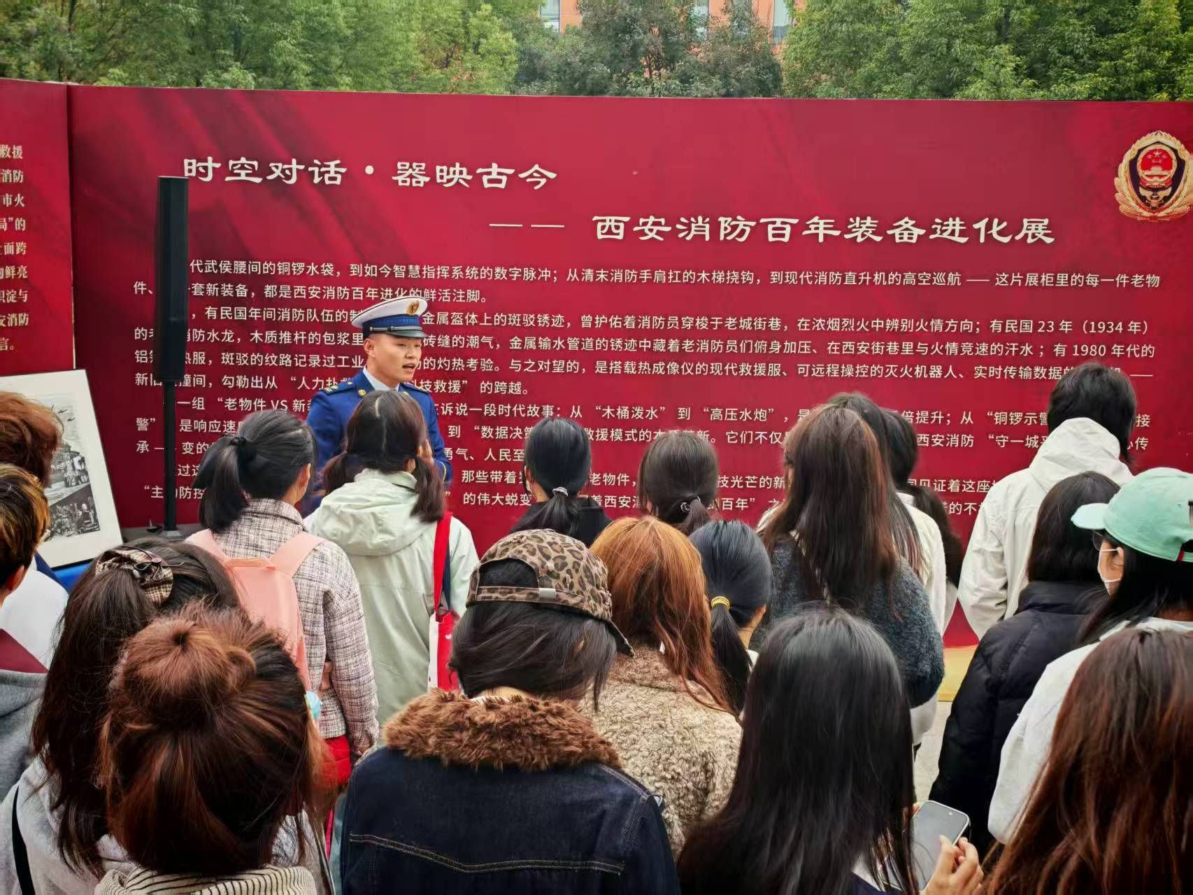 11月5日下午,按照省教育厅办公室《关于开展 2025 年全省教育系统消防宣传月活动的通知》文件精神以及学校“消防宣传月”主题活动安排,保卫处组织BEAT3652025级辅导员、2025级学生安全信息联络员、志愿消防队队员40余人走进西安市消防救援支队参观“时空对话、器映古今——西安消防百年装备进化展”主题展。活动由保卫处处长助理龚成带队参观。