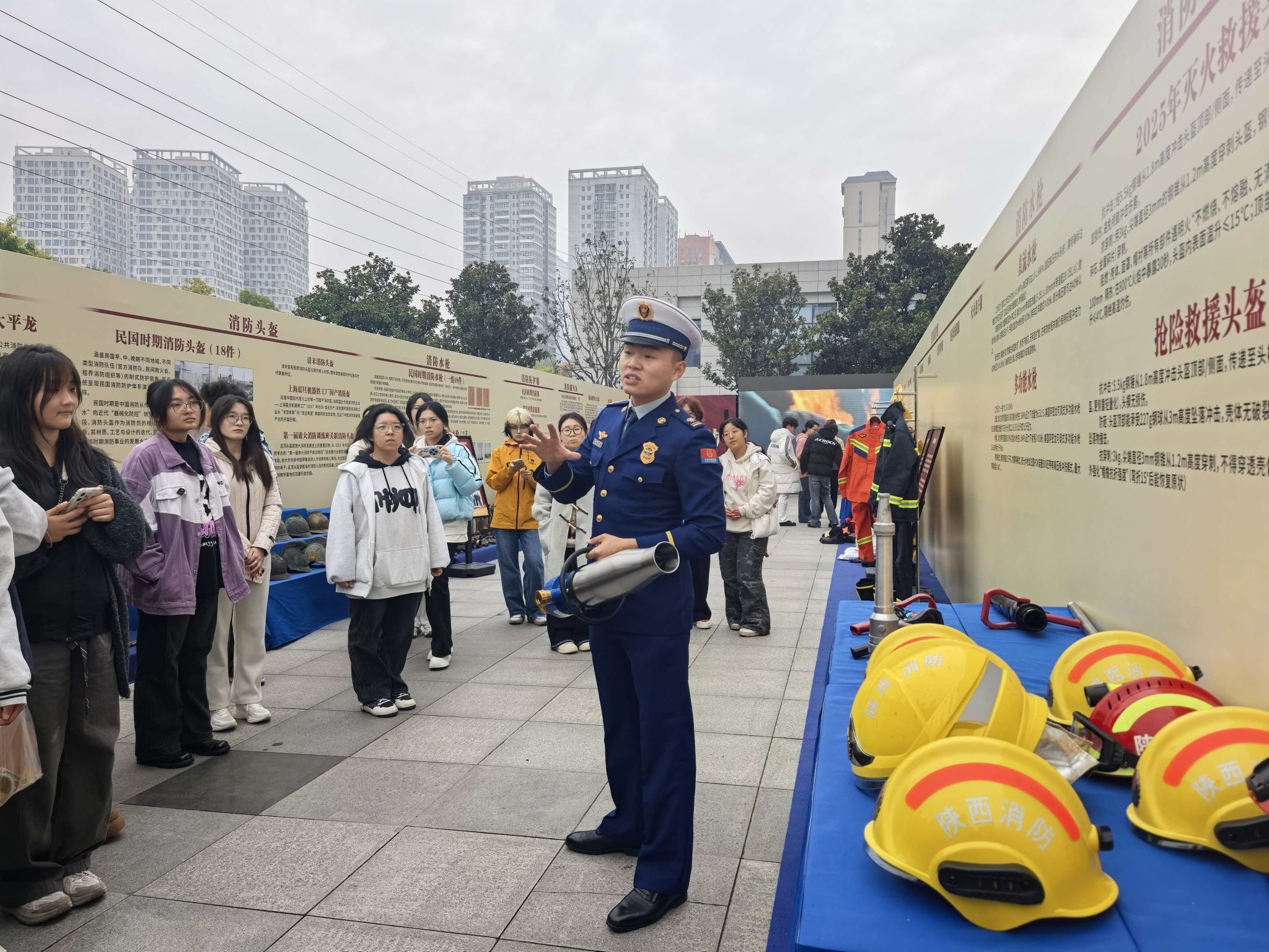 活动中,西安市消防救援支队讲解员向BEAT365师生介绍了消防的起源与形成,讲述了近代以来西安市消防救援事业的发展历程,特别是现场展示了消防器材的历史演变,让参观师生近距离感受了现代消防器材的专业性和多样性。