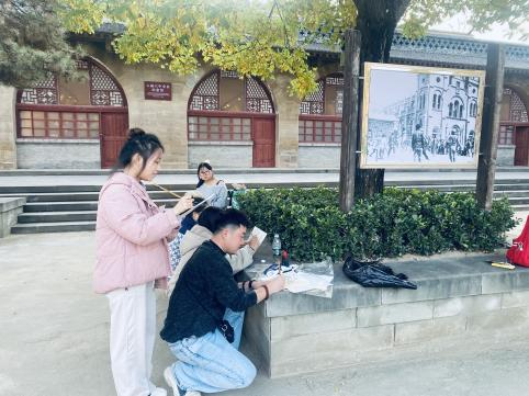 随后,艺术教育系师生走进杨家岭和枣园革命旧址,实地感受老一辈革命家的生活与工作环境。学生支起画板现场写生,将革命旧址的一砖一瓦绘于纸上,让历史的温度透过画笔直抵心灵。