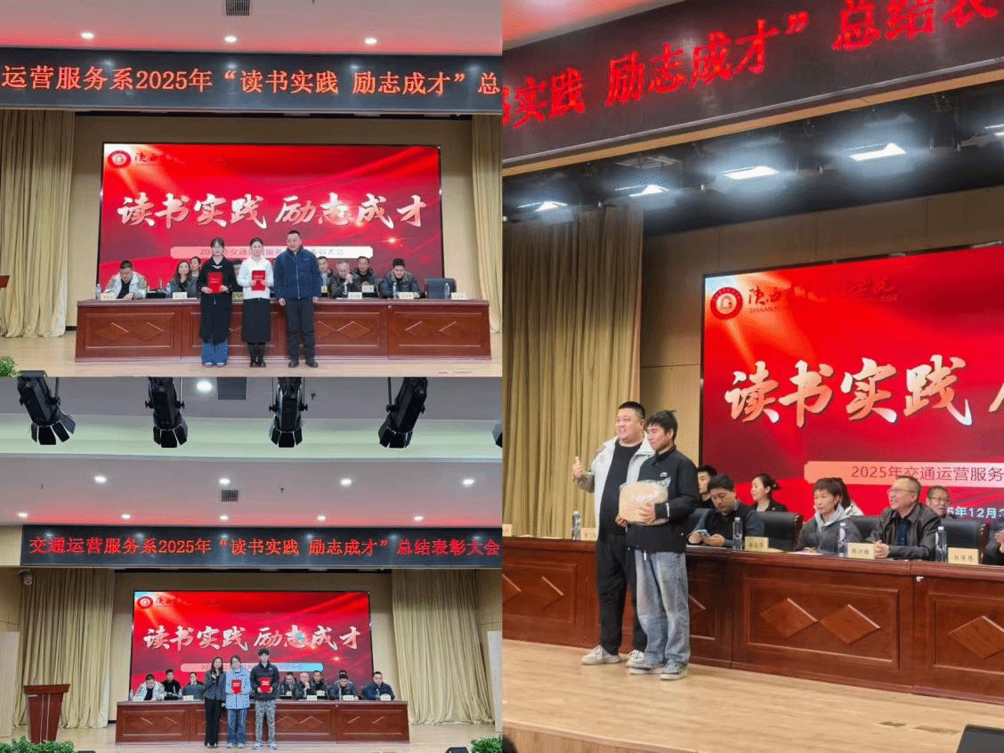 12月30日,交通运营服务系2025年“读书实践 励志成才”总结表彰大会在长安校区图书馆报告厅主会场举行,各班教室同步设立分会场。校党委副书记梁菀华出席,学生处、教务处、校团委等部门主要负责人、联系班处级干部,西安航投未来人才集团、兰州高铁(兰州易食餐饮服务有限责任公司)、西安皇冠假日酒店、东方航空客户服务中心西安分中心、西安顺丰速运有限公司等企业代表及交通运营服务系主要负责人、教研室主任、辅导员、班主任、全体学生参会。大会由系学工负责人张波主持。