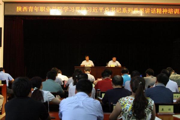7月7日至10日,学院按照省直机关工委和团省委的部署要求,在含光校区举办了为期4天的学习贯彻习近平总书记系列重要讲话精神培训班,学院领导班子全体成员和全体助理以上干部参加了培训。团省委党组成员、学院党委书记安强做动员讲话,学院党委副书记、副院长刘瑞明主持开班仪式和总结交流会,纪委书记杜兵社做培训总结。