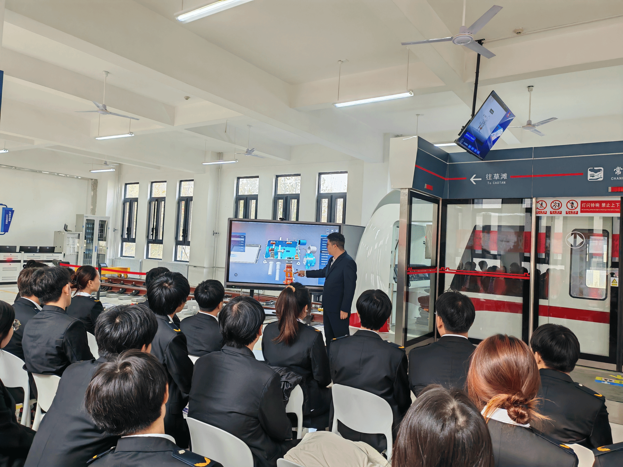 11月22日下午,交通运营服务系在长安校区轨道交通综合实训室举行本学期教学公开课展示活动,交通运营服务系主任韩洲雄、副主任邵华及全体专任教师参加。