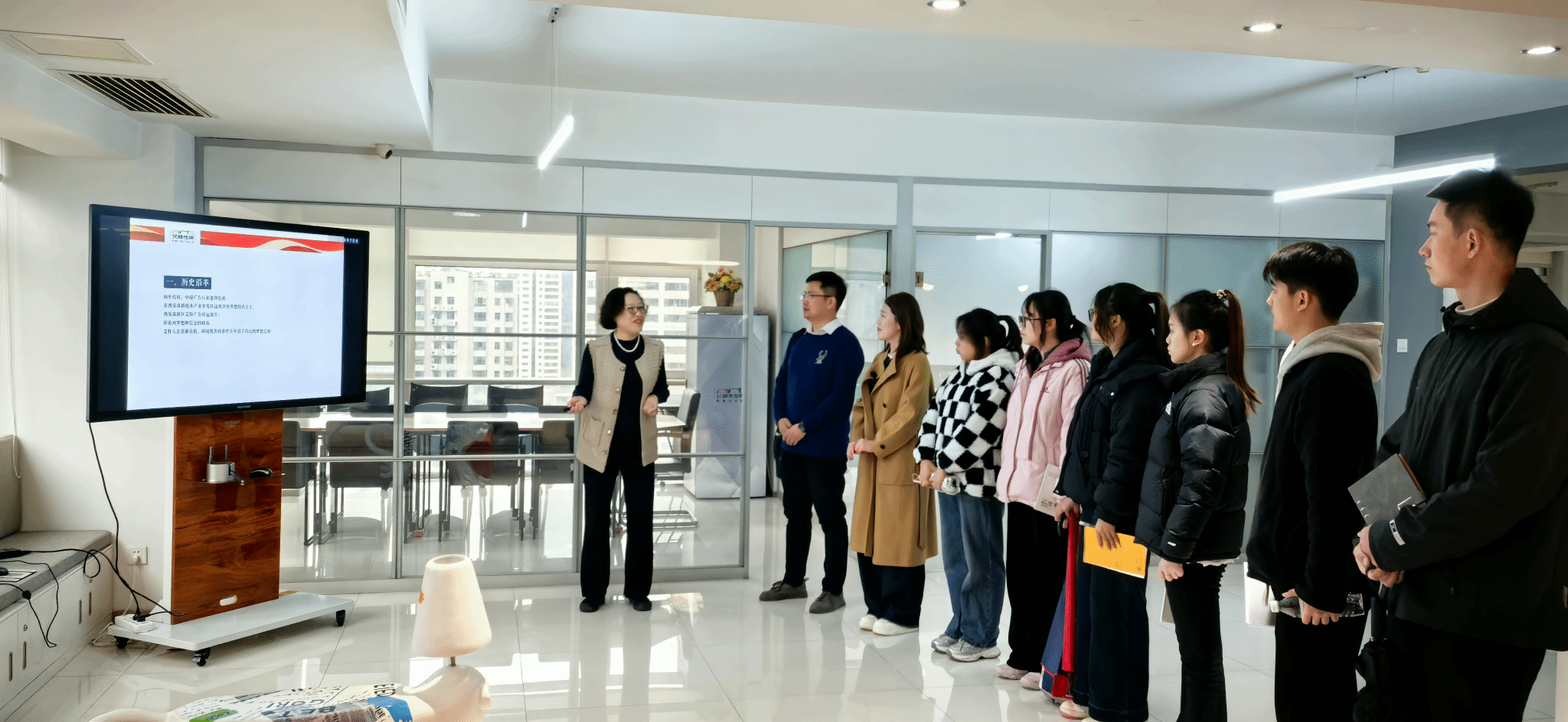 3月3日,文化传媒系广告专业教研室主任李卓、教师冯小茸带领2024级广告专业学生代表前往西安高新区艾特广告有限责任公司开展研学活动。