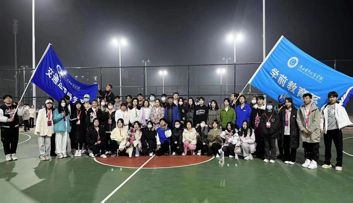 11月17日,交通运营服务系和学前教育系学生会携手举办主题为“顽强拼搏,迎‘篮’而上”篮球友谊赛。学前教育系副主任刘延隆、科研处处长党彩莉与交通运营服务系教师梁洪耀、李钰、张媃媃,学前教育系教师孙珠琳等在现场为同学们加油助威。