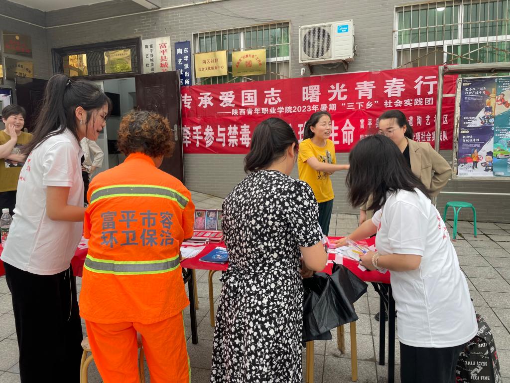 7月3日、4日,深入学习宣传贯彻习近平总书记关于禁毒和法治教育工作的重要指示批示精神,切实增强青年学生法治素养和识毒防毒拒毒意识能力,推动全省普法、禁毒工作深入开展。团委结合2023年暑期“三下乡”社会实践活动安排,招募组建禁毒志愿服务宣传实践团,由团委赵冰玉老师带队,分别赴富平县陶艺社区、长安区郭杜街道书香路社区开展禁毒宣传进社区活动。