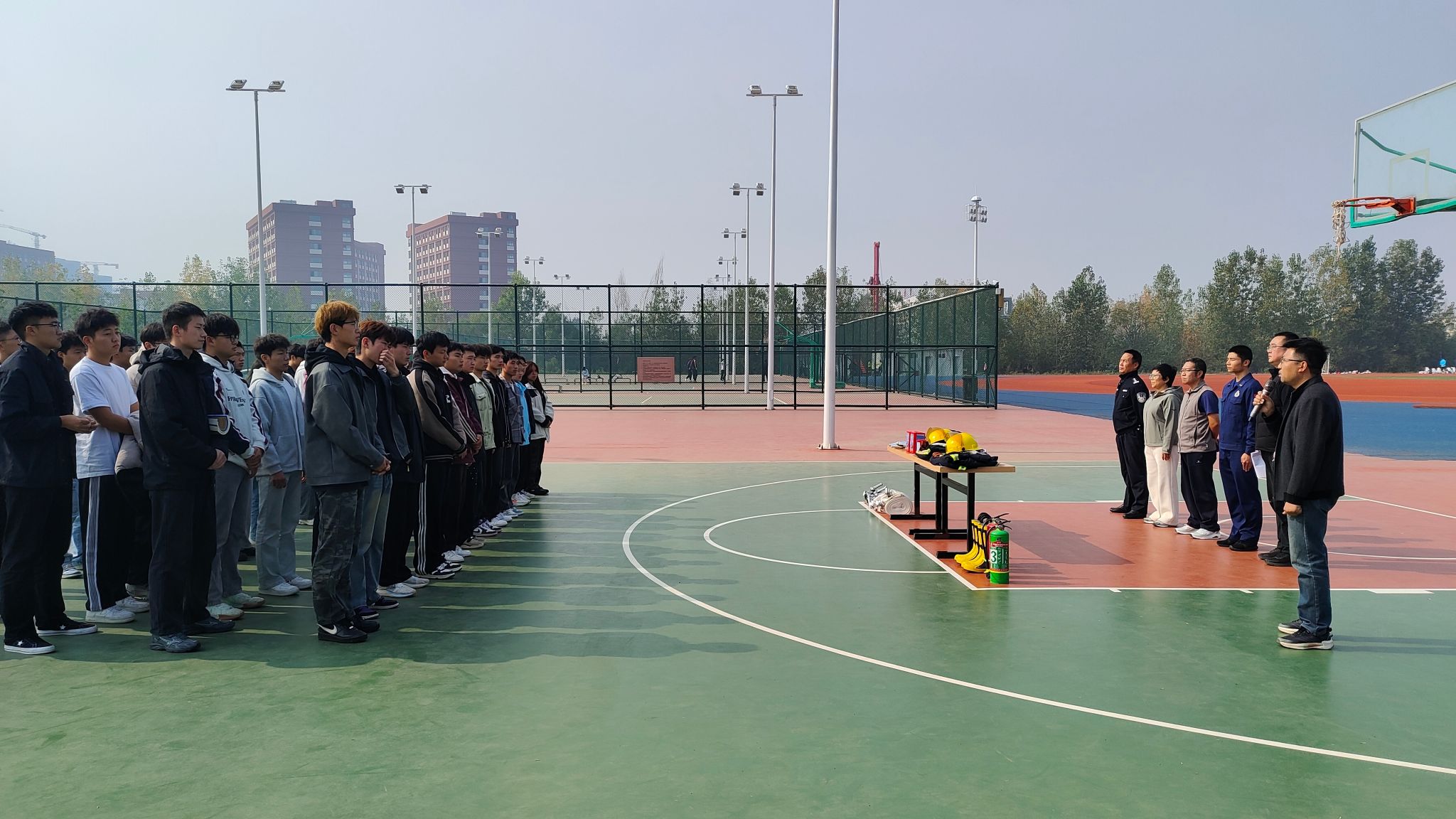 11月6日,保卫处、学生处在长安校区操场联合开展了学校学生志愿消防队培训活动。学生工作部(学生处)部(处)长祁志、保卫处处长姚书芳、学生工作部(学生处)副部(处)长刘国强、驻校民警张建利、保卫处相关工作人员及学校学生志愿消防队全体队员参加。培训由保卫处处长助理龚成主持。