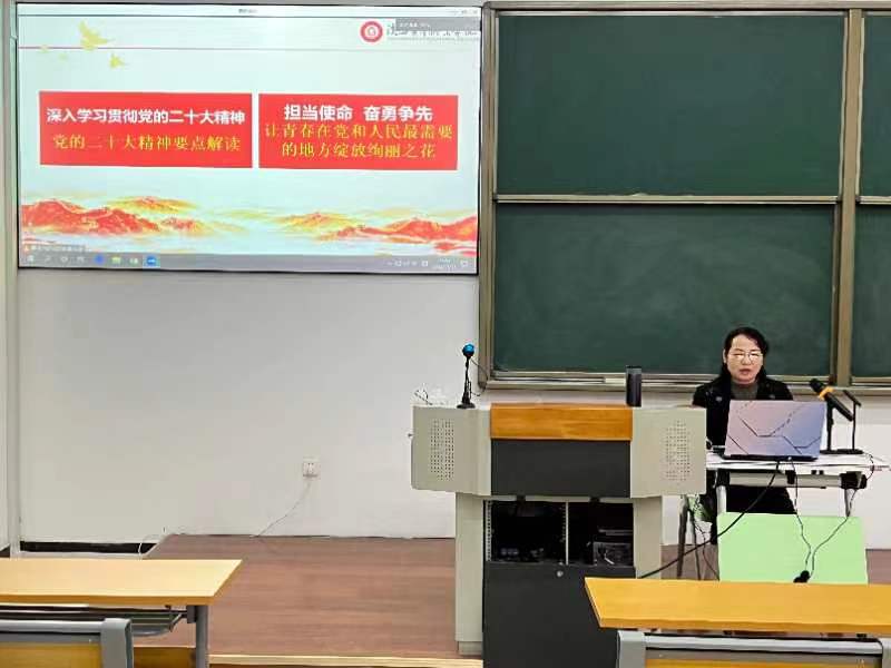 马雅玲作题为《学习领会党的二十大精神奋力谱写新时代中国特色社会主义新篇章》的报告。报告中,马雅玲紧扣党的二十大报告原文,围绕党的二十大主题和主要成果、过去5年的工作和新时代10年的伟大变革、马克思主义中国化时代化、中国式现代化、全面建设社会主义现代化国家的目标任务、坚持党的全面领导和全面从严治党、应对风险挑战等七个方面,分别从报告要点解读、奋进新时代、贯彻新思想、擘画新蓝图、启航新征程等五个部分对党的二十大报告内容进行了全面系统的解读和阐释。宣讲报告内容全面、观点清晰,对校院广大师生全面准确把握党的二十大精神内涵具有重要的启发和引导作用。