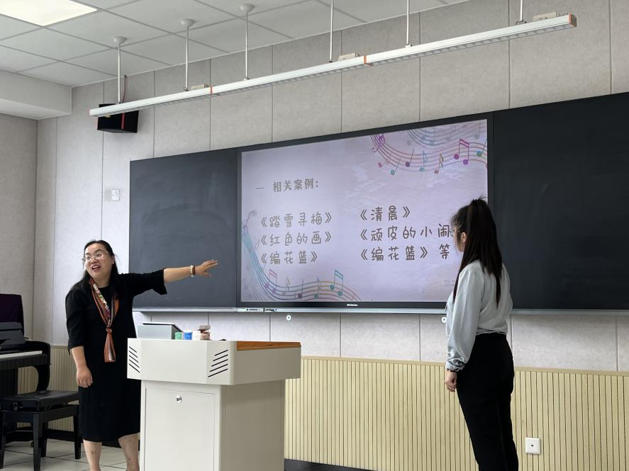 新一轮的课程改革最大的变革就是教学方式的改变。小学音乐教学如何在新时期以科学、合理、有效的教学方式发挥学生主体的作用,从而调动学生自主学习的热情,带着这些问题,音乐教育专业师生前往曲江第三小学观摩音乐课。当天曲江教育局正在组织赛课活动,学生现场感受到分别来自曲江第三小学魏老师《友谊的回声》和南湖小学席老师的《小步舞曲》的示范教学,主题分别是“以回声为切入点让学生感受力度强与弱的变化”、“以华尔兹舞步让学生感受节奏律动”。在赛课结束后,教育专家胡老师还给大家上了一堂大师课,丰富热情地讲述如何备赛、如何思考、如何创新、如何提升课堂氛围。结束后学生倍受启发,纷纷感叹原来还有如此多样的授课方式。