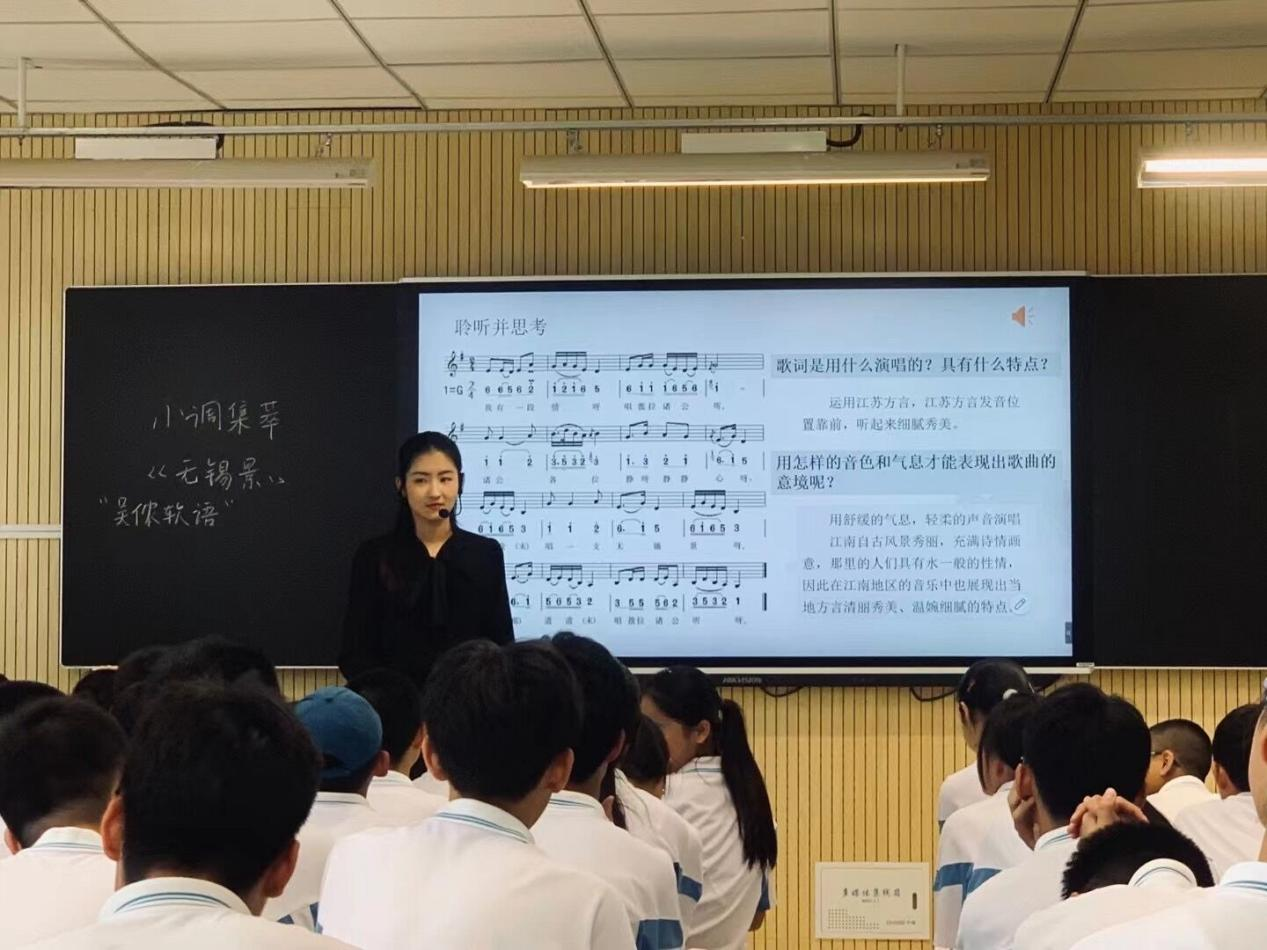 随后,音乐教育专业师生前往高新第四初级中学观摩,张老师为学生们讲的是“小调”,不但讲述了小调的、概念、种类、形式等,还范唱了《无锡景》,用方言演唱的民族自豪感、和音乐的民族特色宣扬了文化自信、民族自信,课后还带领音乐教育专业师生参观了该校的艺术长廊、图书馆、茶艺社、咖啡社等,以及中学生自己创作的美术作品和手工艺作品。