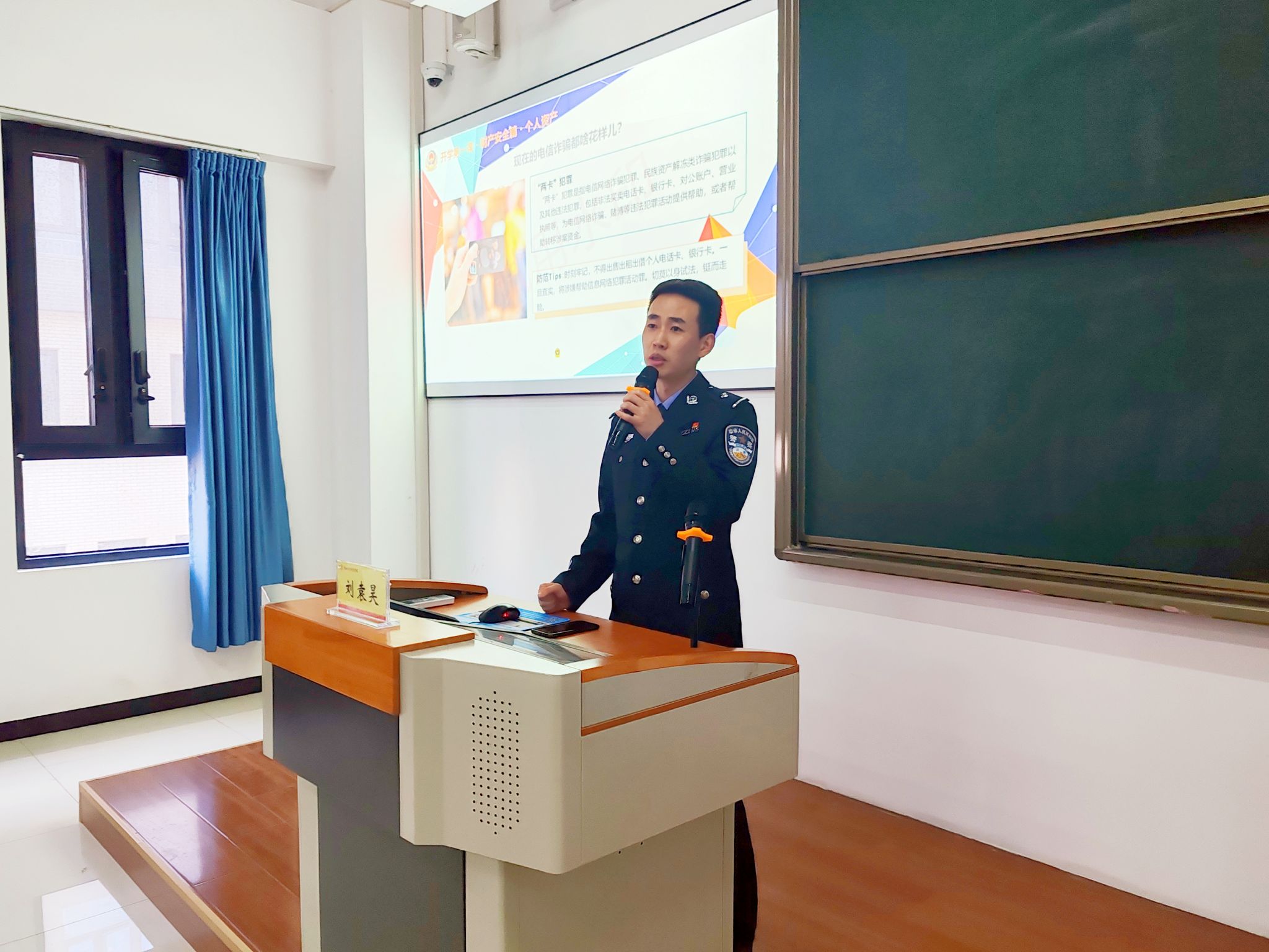 杜曲派出所刘袁昊警官受邀来院授课,为同学们讲解了《中华人民共和国反电信网络诈骗法》,通过刷单诈骗、网贷诈骗等生动案例,讲明了电信诈骗的含义、危害、惯用方法。同时从某高校被骗统计数据入手,深入盘点了高校中发案率较高的网络刷单、裸聊、网贷、游戏账号买卖、冒充客服诈骗等诈骗类型,重点给同学们讲解了遇到电信诈骗如何判断、安全处置。他提示大家,“刷单、刷信誉”是国家严厉打击的违法行为,千万不要相信低投入、高回报的“好事”。