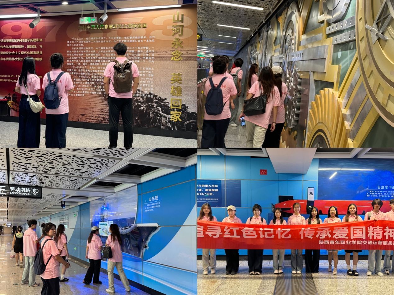 8月7日,团队走进万寿南路站、西北工业大学站、行政中心站等5个特色站点。在“幸福不易・铭记功勋”英模功勋主题通道,参观学习“两弹一星”功勋科学家事迹、董存瑞等十大英模事迹与“志愿军烈士遗骸归国”历史影像,深切感悟奉献精神与家国情怀。在“航天强国”科普长廊,同学们通过影像和展品,了解我国的重大科技成果,学习科研工作者们投身海洋强国建设、攻克“卡脖子”技术难关的矢志报国情怀。实践团师生还前往西安事变纪念馆,深入了解重要历史事件, 进一步深化历史认知与历史责任。此外,学生结合专业观察站点空间设计在文化展示与客流疏导中的作用,协助工作人员开展志愿服务。