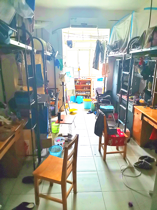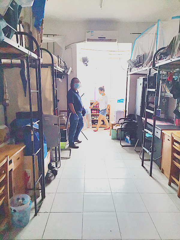 参与消杀工作的老师分为三组,携带清洁器具和消杀工具分别到美术学院本科毕业生男生、女生宿舍北区6A、5B,硕士研究生毕业生北区9B,3B和西区单一宿舍,完成毕业生共96间宿舍的逐间通风、清洁和消杀,刚下了场雨的天气十分闷热,老师们完成清洁消杀工作后都大汗淋漓。