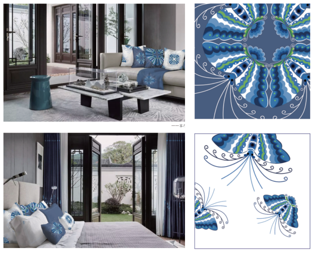 苗绣文创系列方案主要包括蝴蝶纹样、凤凰纹样、花草纹样、其他图案的开发设计。