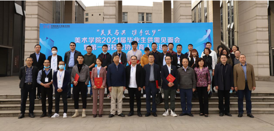 随后,校领导与各企业代表在光谷美术馆前合影留念,并参观学院在美术馆同步策划布置的专业展览展示。