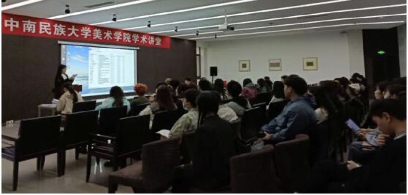 各项目紧密结合课程学习内容或者从学校生活的角度出发展开创新创业实践,答辩会上许多项目组做出精彩演讲:“非遗阳新布贴活化研究”项目组则重在传承非遗文化,利用十二生肖,设计立足于楚文化的阳新布贴文创,同时也以阳新布贴民间美术作为载体,结合传统手工、绣花工艺等衍生更多有关传统民间美术的文化产品;而“美间育悦”项目组主张为同学打造美丽的学习空间,致力于将教室打造为微型美术馆。以图画展示艺术资源知识为主要形式,采用平面设计、实体交互设计以及装置艺术来根据教室结构进行布置,巧妙的将美术馆与教室相结合,以此充分发挥美院学子专业特色,同时也响应了国家“美育”政策的号召,营造极具艺术性的良好学习氛围。