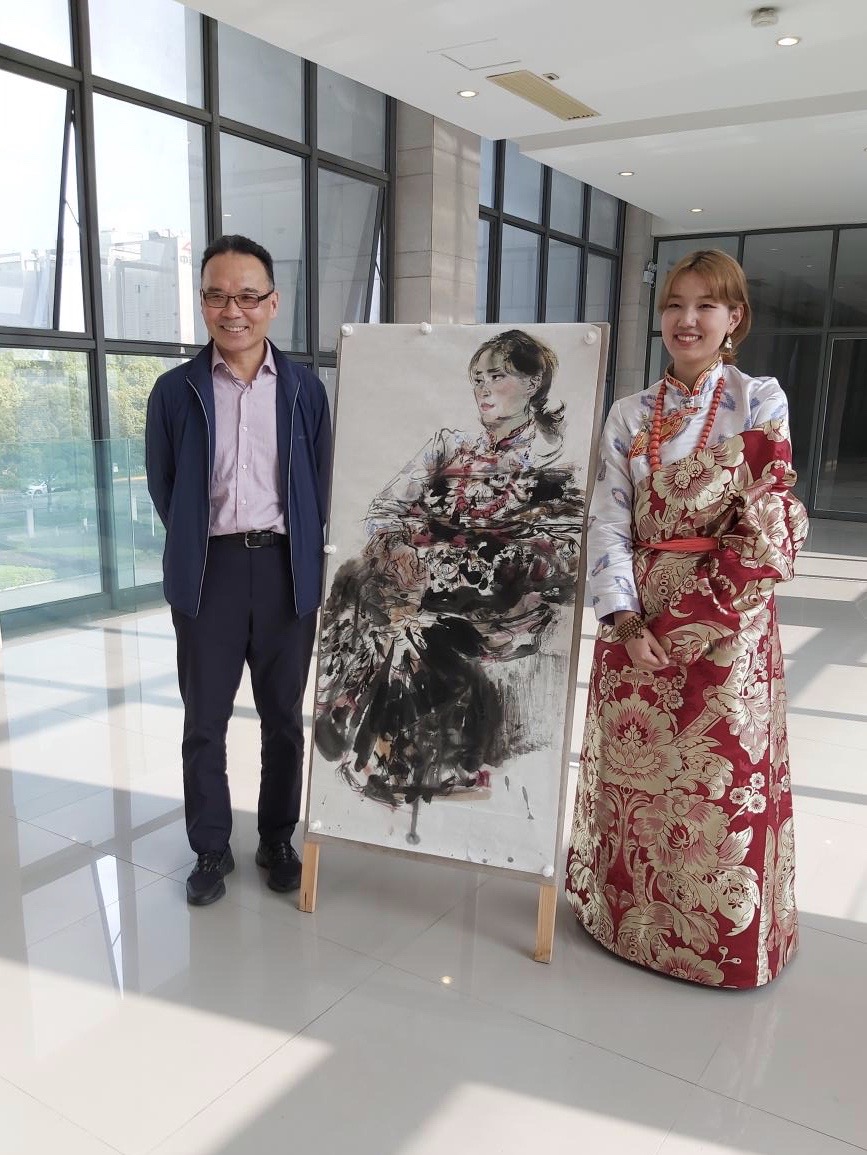 写生活动上,任惠中老师以美术学院绘画专业2002班仁钦卓玛同学为模特,向师生传授十几年来的作画经验,并为师生带来了一场精彩绝伦的视觉盛宴。活动伊始,任老师就模特的“态”展开讲述,讲述了真人写生与照片写生的本质区别,并强调在作画过程中要时刻注意捕捉细节,捕捉模特的“活”,以做到活灵活现,展现写意画的绝佳状态。随后,任老师以独特的速写式方法起稿,寥寥几笔勾勒形态,并在此强调人物骨骼、衣服等结构的重要性,解释了绘画结构的笔墨关系与画面的松紧关系是相吻合的这一道理。随后,任老师就画面的不断深入和上色等步骤展开详细的讲解,并向同学们介绍了自己存储颜料的方式等细节问题,同时也针对国画中“加白粉”的问题阐述了自己的独特见解,使在座的师生受益匪浅。