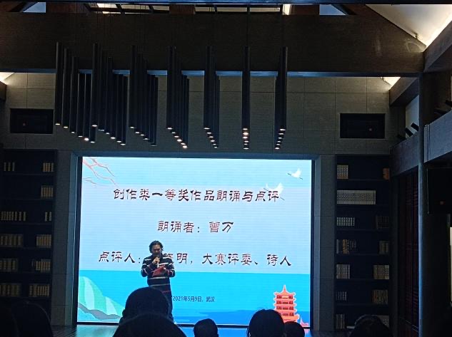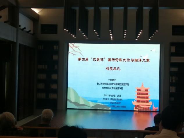 2021年5月9日,第四届“求是杯”国际诗歌创作与翻译大赛颁奖典礼在黄鹤楼园区举行,浙江大学世界文学跨学科研究中心主任、欧洲科学院院士聂珍钊,湖北省作协原副主席梁必文,湖北省作协副主席张执浩,华中师范大学外国语学院院长罗良功,中国社科院《世界文学》杂志主编高兴,华中师范大学学报副主编曾巍等出席会议。我院建筑学专业2018级本科生曾万同学获得大赛创作类一等奖。