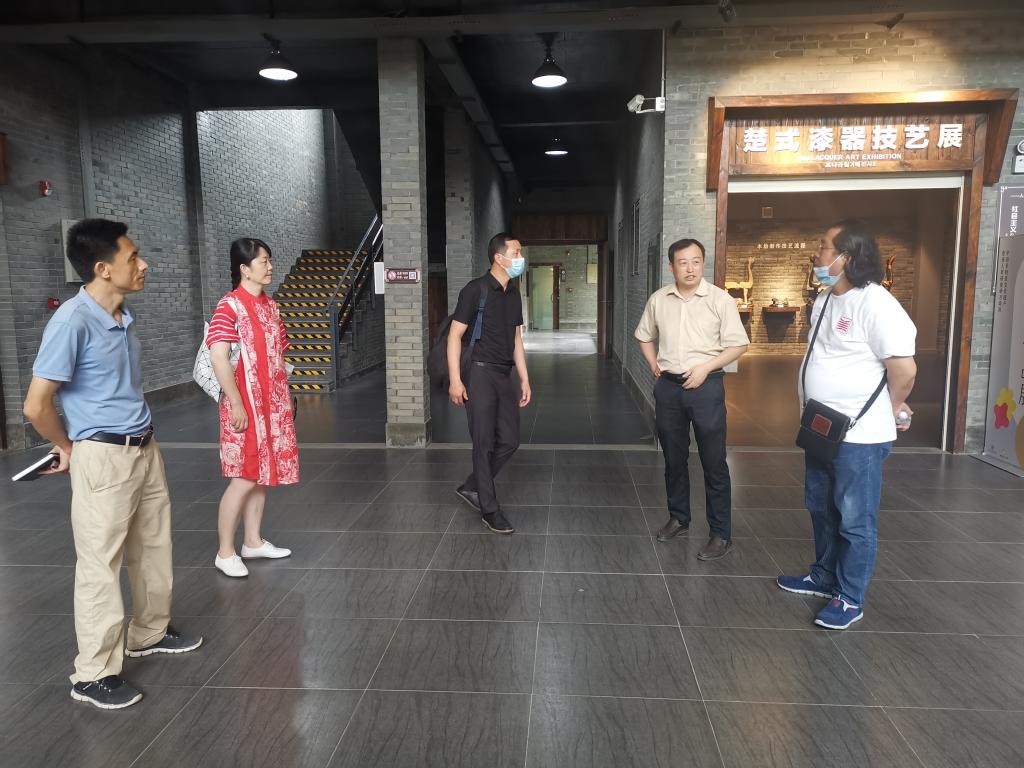 到访的美术学院教师们一行在荆楚文化创意工作站负责人杨小丙副校长的陪同下参观了湖北十八匠文化发展投资有限公司和荆楚非物质文化遗产技能传承院。荆楚非遗传承院探索非遗技艺传承和现代职业教育的结合之路,建有“大漆文化展厅”、“楚式漆器技艺展厅”和荆楚民间工艺活态传承工作坊(荆楚十八匠工坊)12个,包括“楚式漆器髹饰技艺”、“磨鹰风筝”、“荆州葫芦器制作”、“荆楚剌绣(楚绣、汉绣)”、“雕花剪纸”、“楚简制作技艺“、”楚凤瓷盘”、“楚玉琢磨”、“楚式斫琴”、“微雕技艺”和“景泰蓝制作技艺”等工坊,并有国家级和省市级民间工艺技能大师进驻传承院开展荆楚非遗文化和技能的传承。