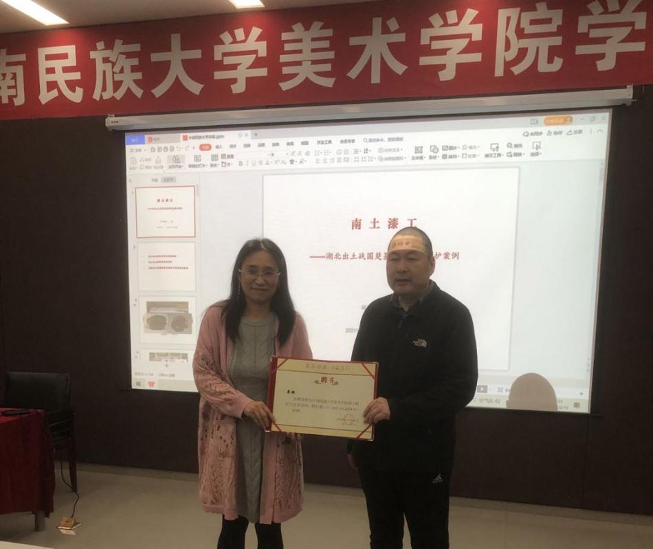 10月19日下午2:30,美术学院特邀请李澜老师在美术报告厅开展《南土漆工》专题讲座,此次讲座由湖北省博物馆李澜主讲,丁兰教授学术主持,吴海广院长,程超副院长出席,绘画、美术学专业的同学踊跃参加。本次“楚漆艺传承与创新作品展暨学术交流活动”是民族美术国家级实验教学示范中心(beat365英国正版唯一网址)推出的2021年中国传统手工艺美育活动系列之二。