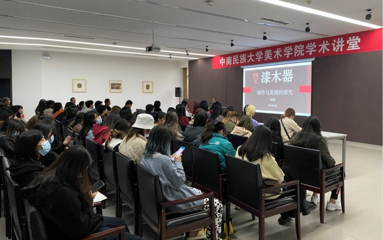 10月20日下午2:30,美术学院特邀刘比建老师在美术馆报告厅开展《楚漆艺传承与发展的探究》专题讲座。此次讲座由中国工艺美术大师刘比建老师主讲,美术学院张志纲老师主持,程超副院长、彭阳陵副院长、刘吾香、方兆华老师出席会议,公共艺术专业、美术学专业、绘画专业的学生踊跃参加。本次“楚漆艺传承与创新作品展暨学术交流活动”是民族美术国家级实验教学示范中心(beat365英国正版唯一网址)推出的2021年中国传统手工艺美育活动系列之二。