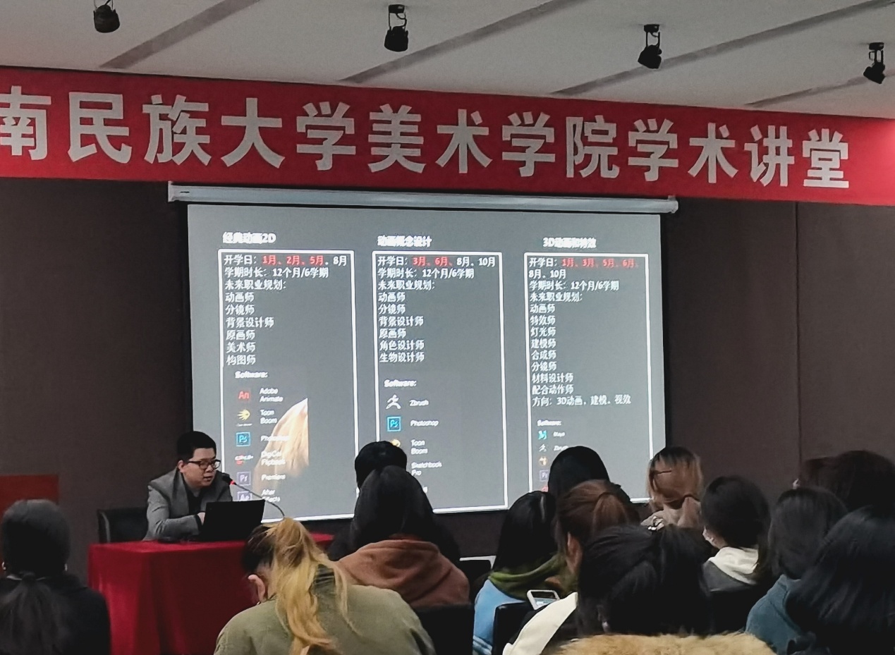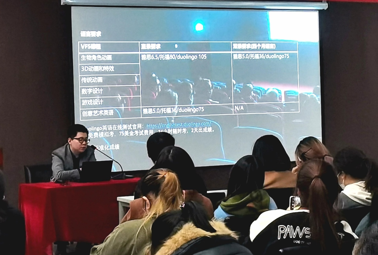 随后,蒋奇老师从学院发展、专业介绍、毕业生情况、课程内容、语言考试等方面详细介绍了加拿大温哥华电影基本情况及国际交流项目内容。同时,蒋老师也就转学分要求、奖学金设置等方面给大家进行讲解,向同学们传达了温哥华电影学院在教学、科研、人才等教学成果。并表示利用beat365英国正版唯一网址美术学院和温哥华电影学院各自优势共同开发合作项目以促进我院的学生专业的发展与学习,实现共赢。
