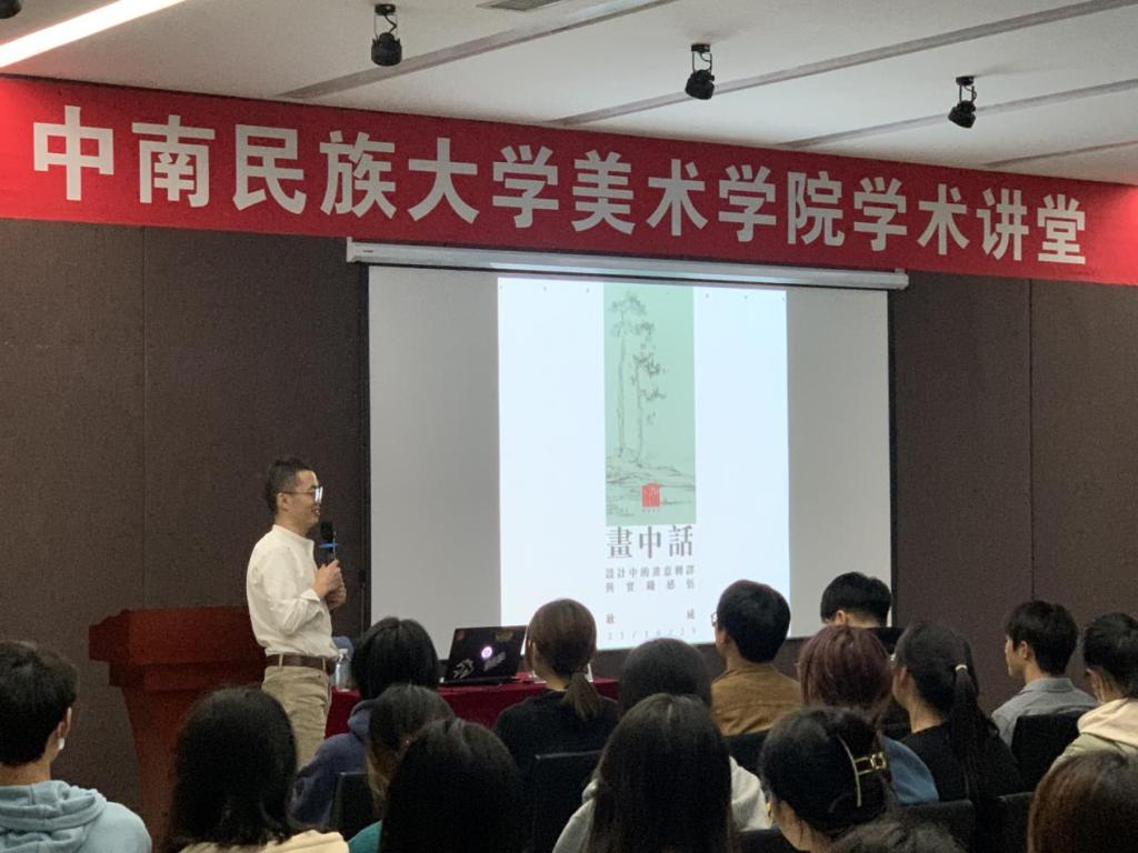 10月29日下午18:30,为迎接beat365英国正版唯一网址70周年校庆,美术学院环境设计专业特邀beat365官网2006级优秀学子深圳迈丘景观规划设计有限公司董事、设计总监、高级工程师耿威先生,在beat365英国正版唯一网址光谷美术馆三楼学术报告厅开展了《画中话——设计中的画意转译与实践感悟》讲堂活动。此次讲座由中国景观设计杰出人才耿威先生主讲,美术学院夏晋教授主持,彭阳陵副院长、廖璇、熊清华、龙涛等老师出席会议,环境设计、建筑学等专业学生全员参与。
