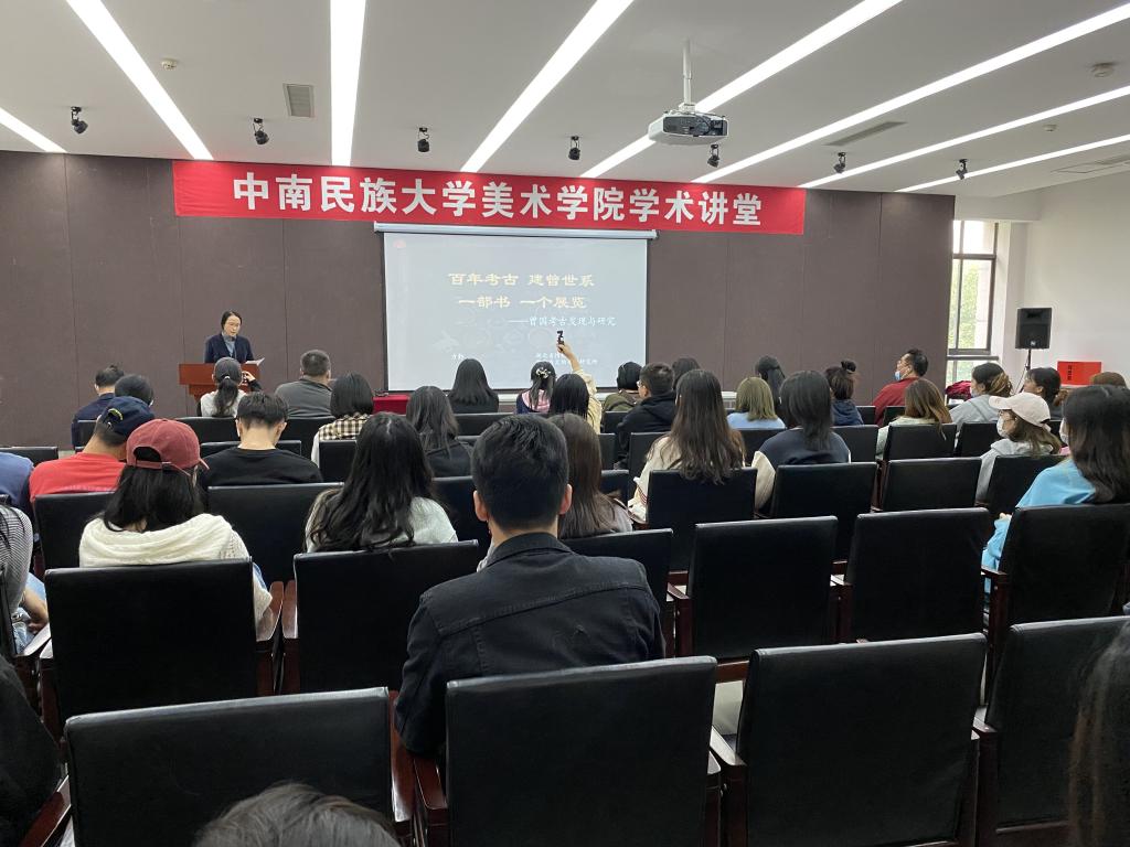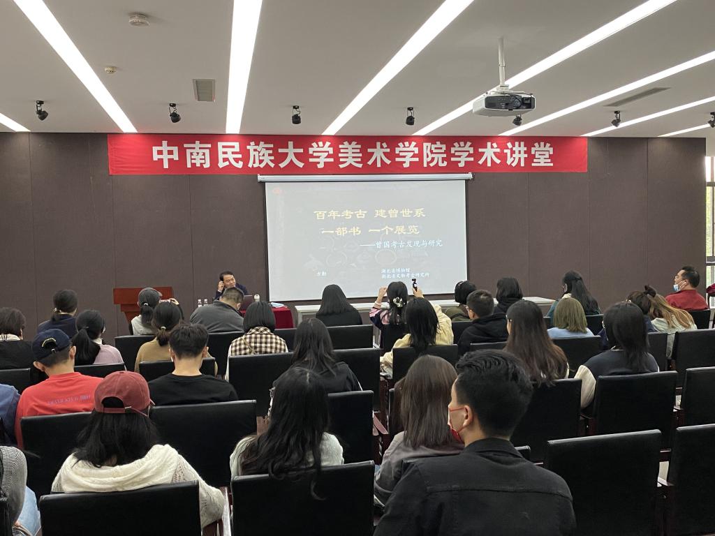 11月1日下午美术学院于三楼报告厅举行2021年中国传统手工艺美育活动系列之二“百年考古 建曾世系 一部书 一个展览——曾国考古与研究”主题讲座,由beat365英国正版唯一网址民族学与社会学学院丁兰老师主持,湖北省博物馆馆长方勤主讲,美术学院院长吴海广,副院长彭阳陵,张志纲等老师与会,2019级公共艺术各班同学参加。