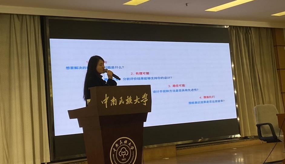 随后,学姐开始讲解此次讲学的主题——设计竞赛。首先,韩依纹学姐提出第一个问题:学生如何开展一项设计并将成果投递出去?她为同学们提供解决思路,从问题导向、有理可据、路径可循、图面抗打这四个方面逐步解决问题。为了让同学们有更清晰的竞赛思路,韩依纹学姐展示了一份学生竞赛案例,这篇“打造自然力做功的生物廊道栖息地破碎化背景下的人象共生”的项目刚获得了第十九届亚洲设计学年奖。韩依纹学姐借此案例具体分析了竞赛项目的实施步骤,从竞赛要求及案例分析,到论文梳理及问题网络、选址确定及前期分析,最后展示了项目的最终成果。通过学姐所分享的内容,同学们对设计竞赛有了更深层次的了解。
