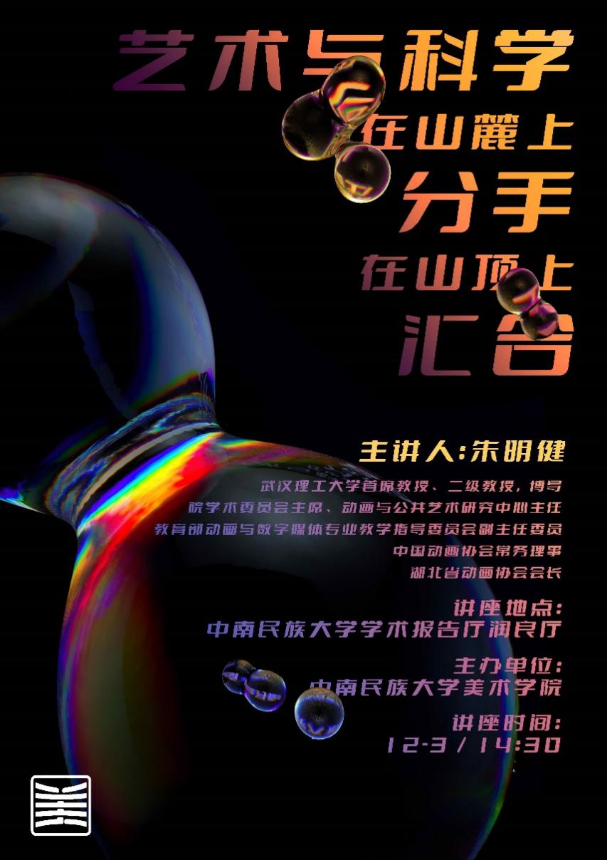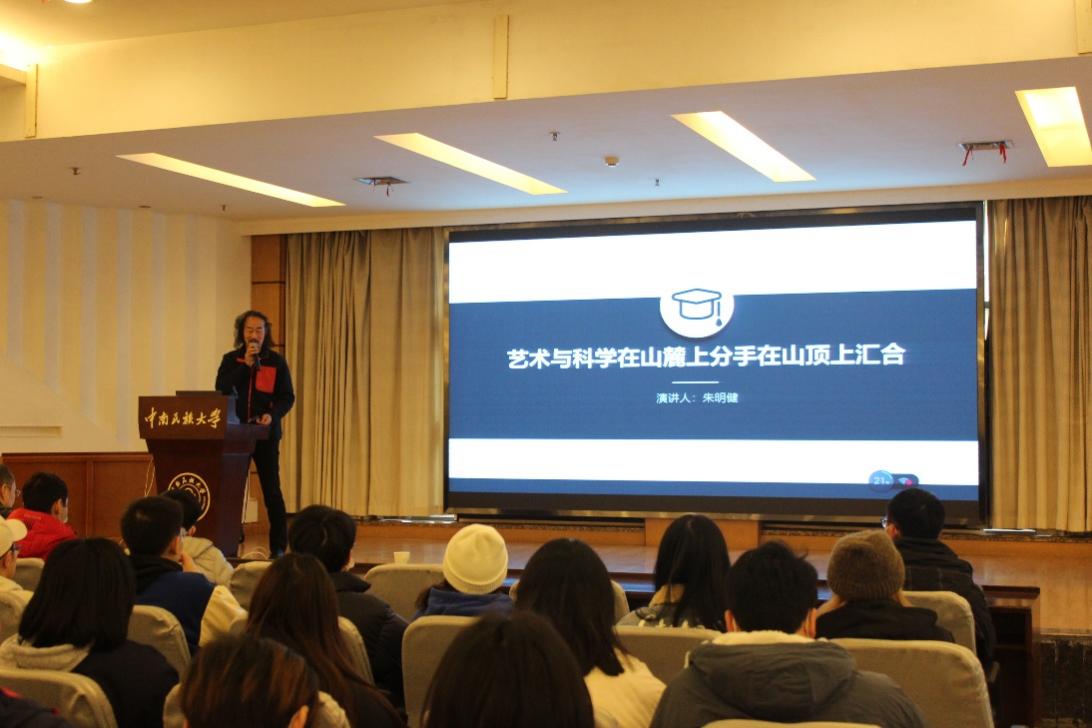 12月3日下午,教育部动画与数字媒体专业教学指导委员会副主任委、武汉理工大学首席教授、博士生导师朱明健教授在学术交流中心润良报告厅作了《艺术与科学在山麓上分手在山顶上汇合》的学术讲座。美术学院动画和视觉传达专业本科生,以及研究生和专业教师参加,活动由院长吴海广主持。