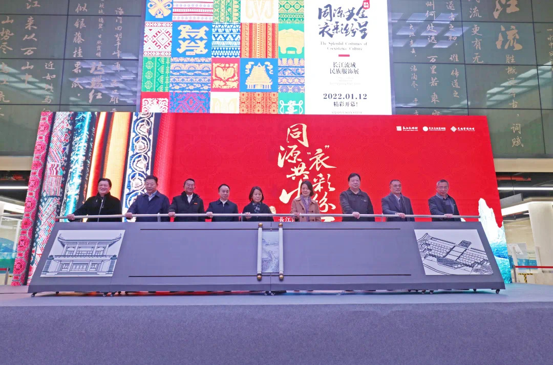 2022年1月12日,“同源共生‘衣’彩纷呈——长江流域民族服饰展”在长江文明馆正式开幕,美术学院学子19件(套)服饰设计、漆画、雕塑、民族人物插画作品和皮影文创产品受邀参展。