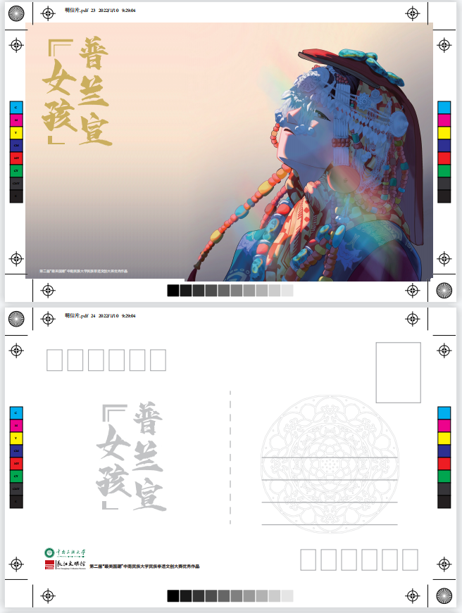 上图为  黄宇阳编排的民族人物插画明信片之一