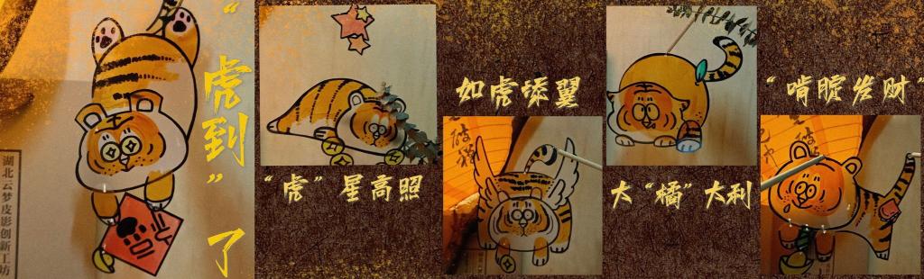 收到展览邀请通知后,美院学子积极投稿。有同学为迎接农历虎年的到来,采用五种可爱圆润小老虎的形象创作了“五虎临门”皮影文创手伴;还有同学专门为此次展览活动设计编排出参展的民族人物插画明信片。