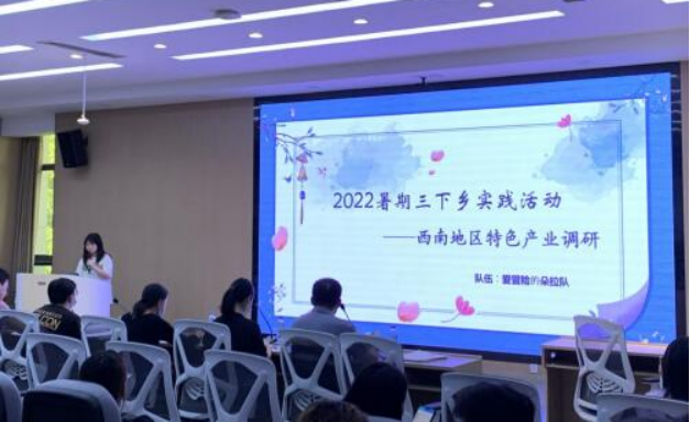 参与答辩的团队按顺序进行了5分钟的PPT展示,每组答辩负责人主要从社会实践的主要背景、内容、调研成果及同学们的收获等内容展开报告。